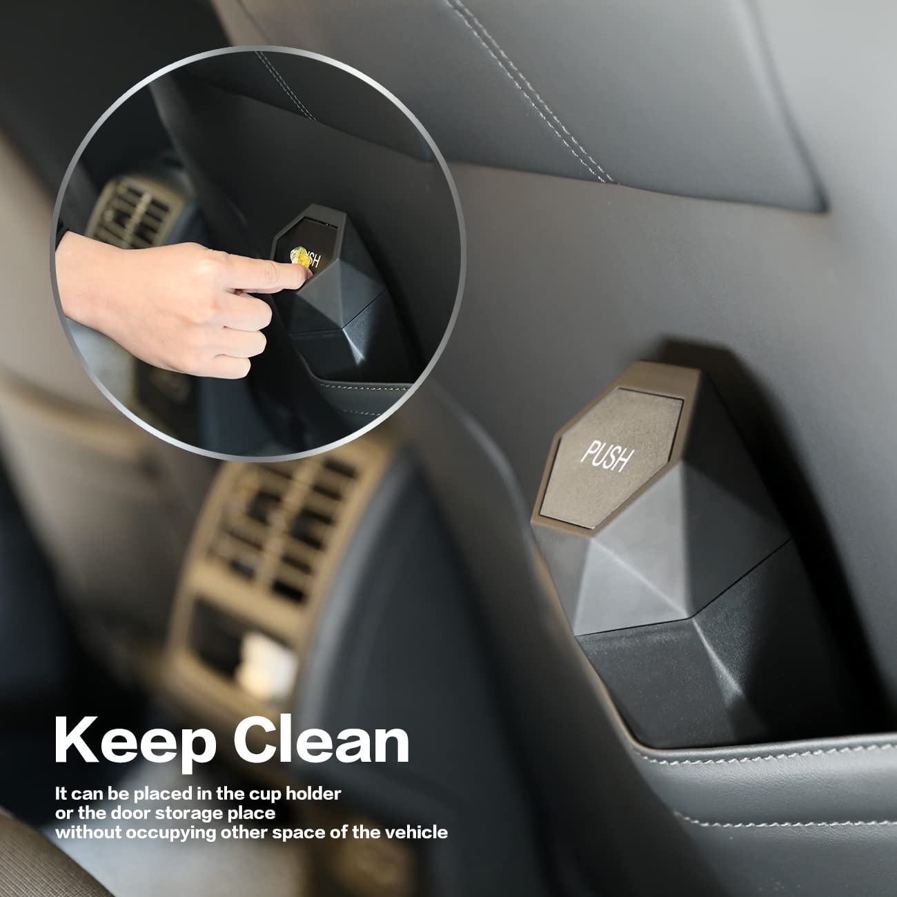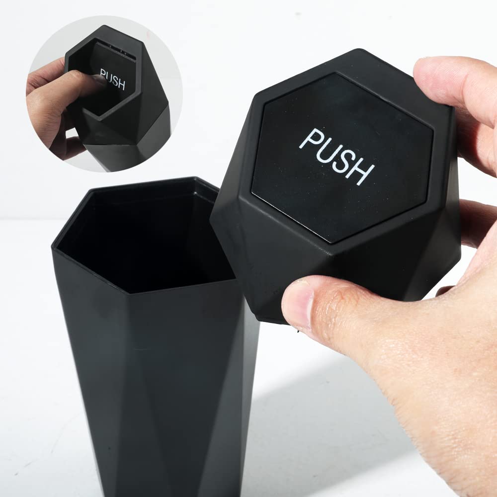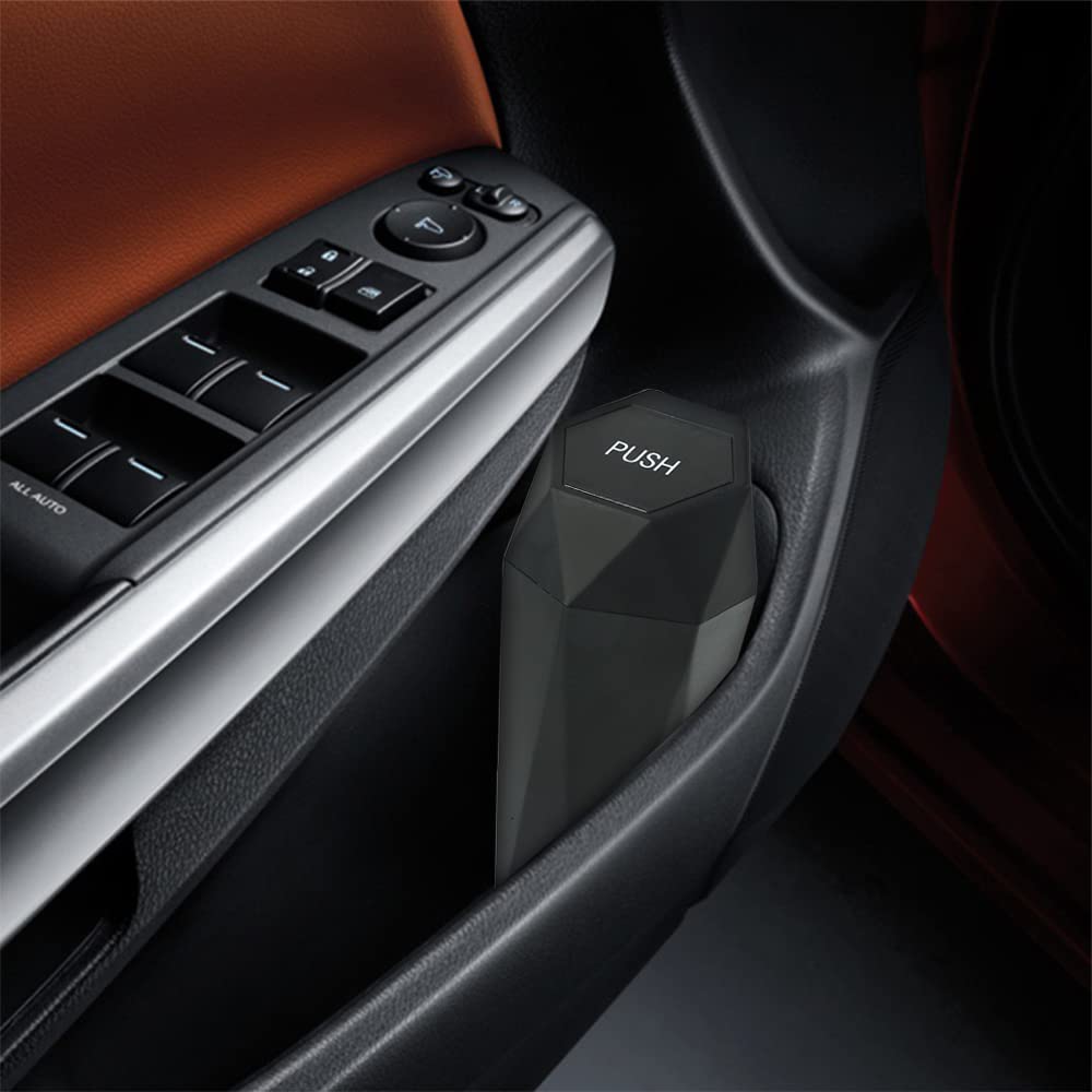 - [Convenience] The lovely trash can with a cover and a push is designed with an easy to snap cover, so you can easily put the garbage into the trash can because the spring is very flexible. You don't have to worry about litter on the car anymore!