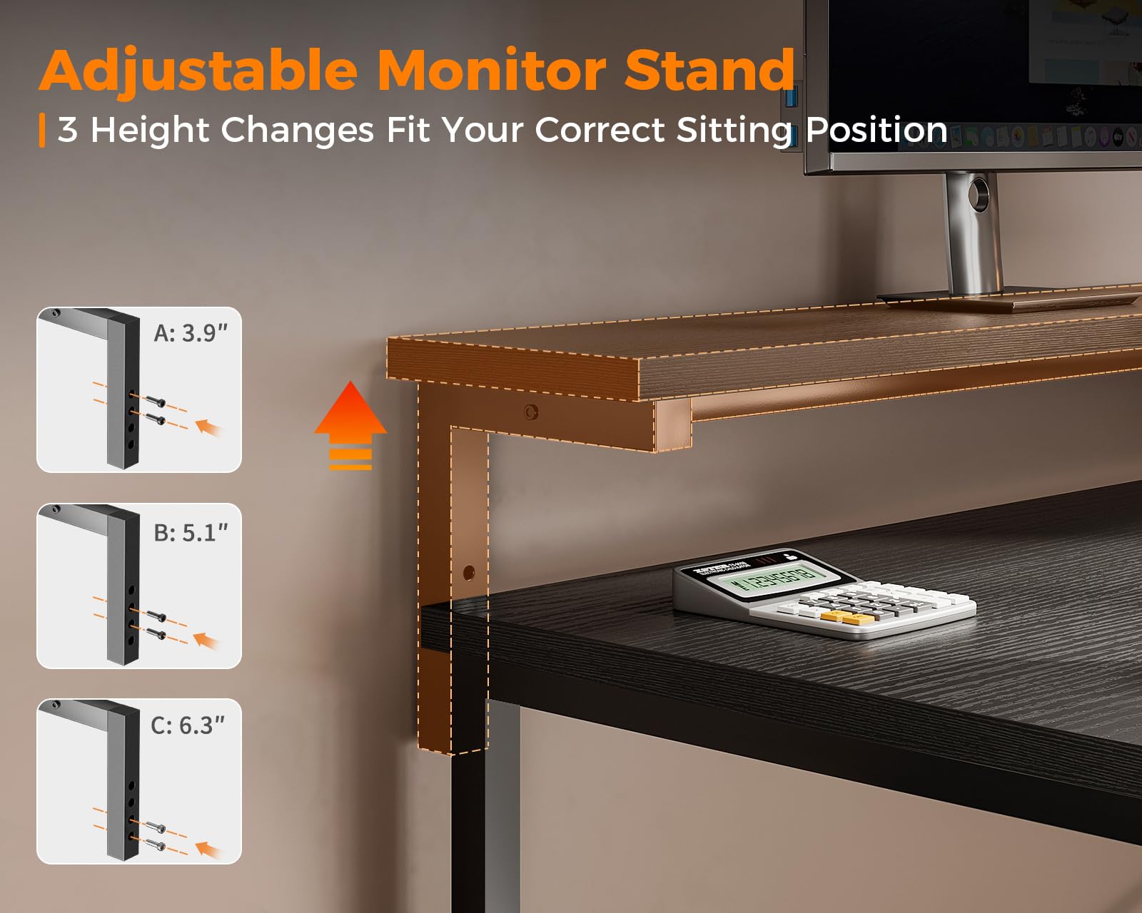 - 【ADJUSTABLE MONITOR STAND】Monitor stand in this office desk is adjustbale and ergonomic, 3 height options (3.2", 4.3", 5.5"), choose either one you prefer to get a comfortable sitting position. This monitor shelf can hold two monitors at same time, meet your high efficiently work needs.