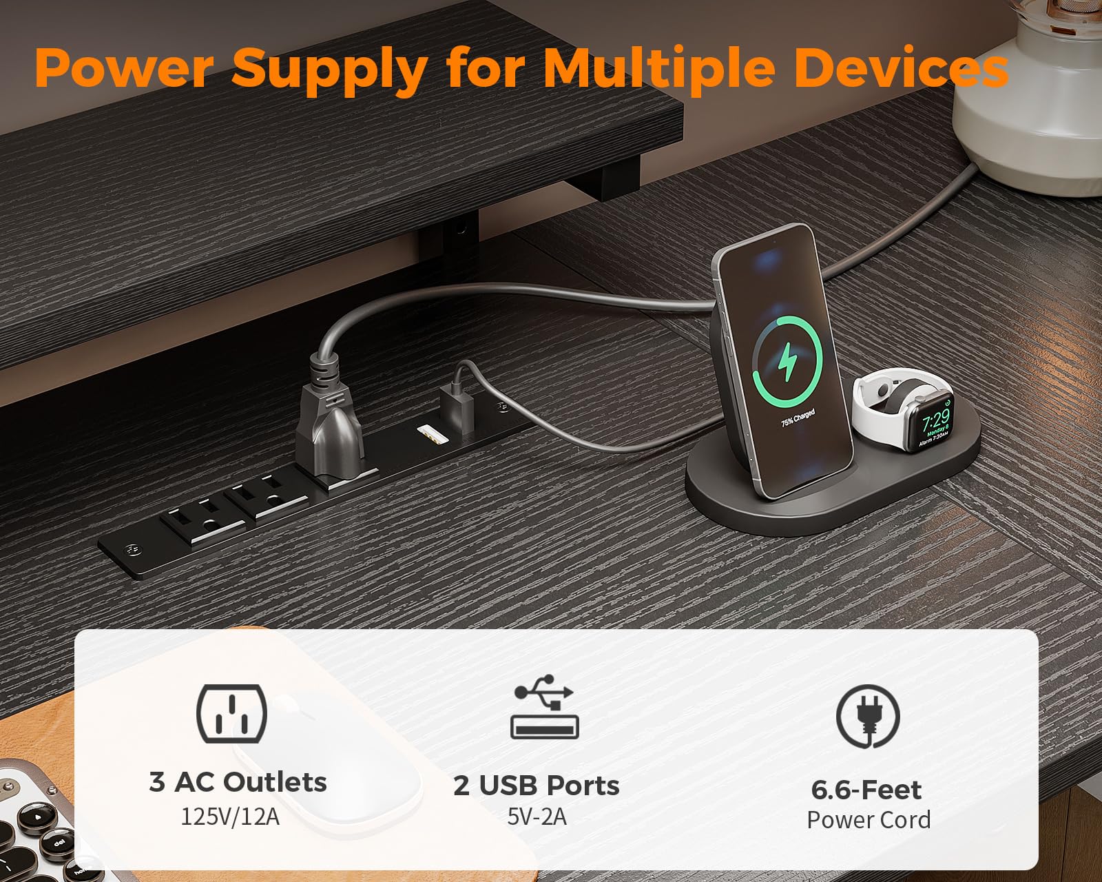 - 【Built-in Power Outlet】The L Shaped Computer Desk comes with a built-in power outlet, provides 4 AC outlets and 2 USB ports. With this home office furniture, now you can charge multiple devices easily and safely!