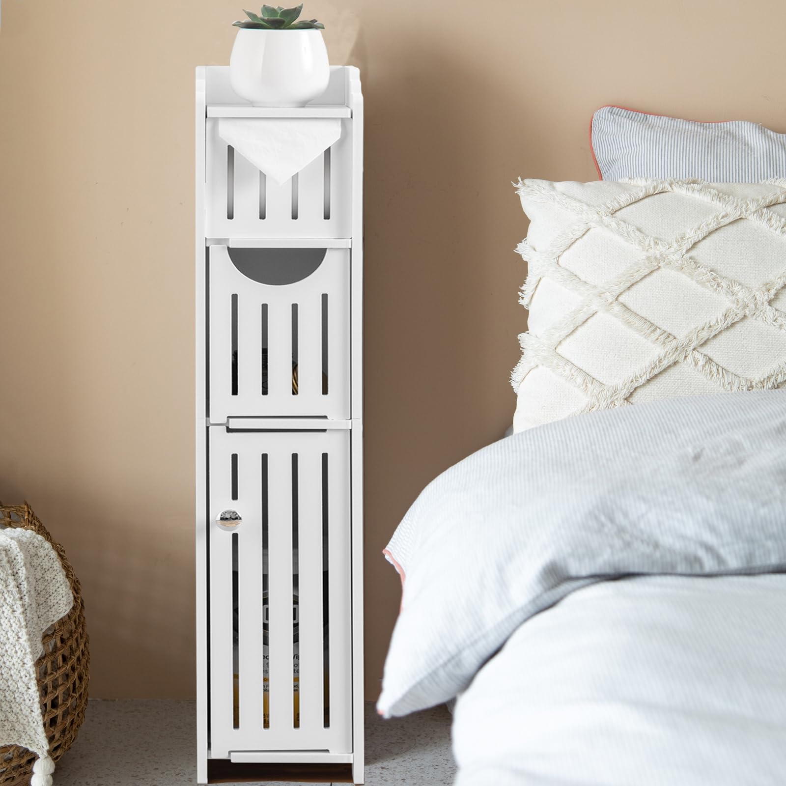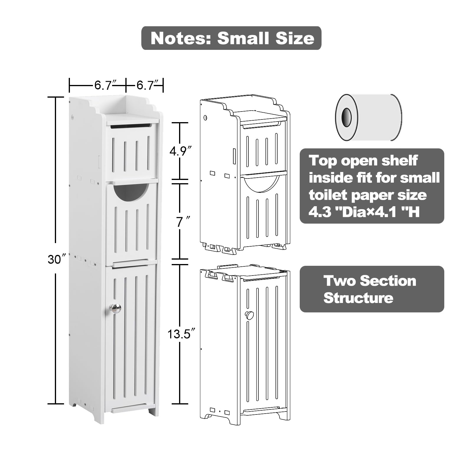 - Multi-purpose Storage: use this small storage cabinet to organizing any room;use it as toilet paper stand between the wall and toilet in bathroom;used as a small bedside table in bedroom tight spaces, this toilet paper cabinet can use as pland shelves to storing home decors too