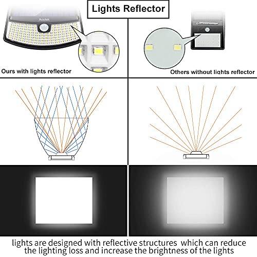 Aootek New Solar Lights 120 LEDs with Lights Reflector,270° Wide Angle, IP65 Waterproof, Easy-to-Install Security Lights for Front Door, Yard, Garage, Deck (4 Pack)