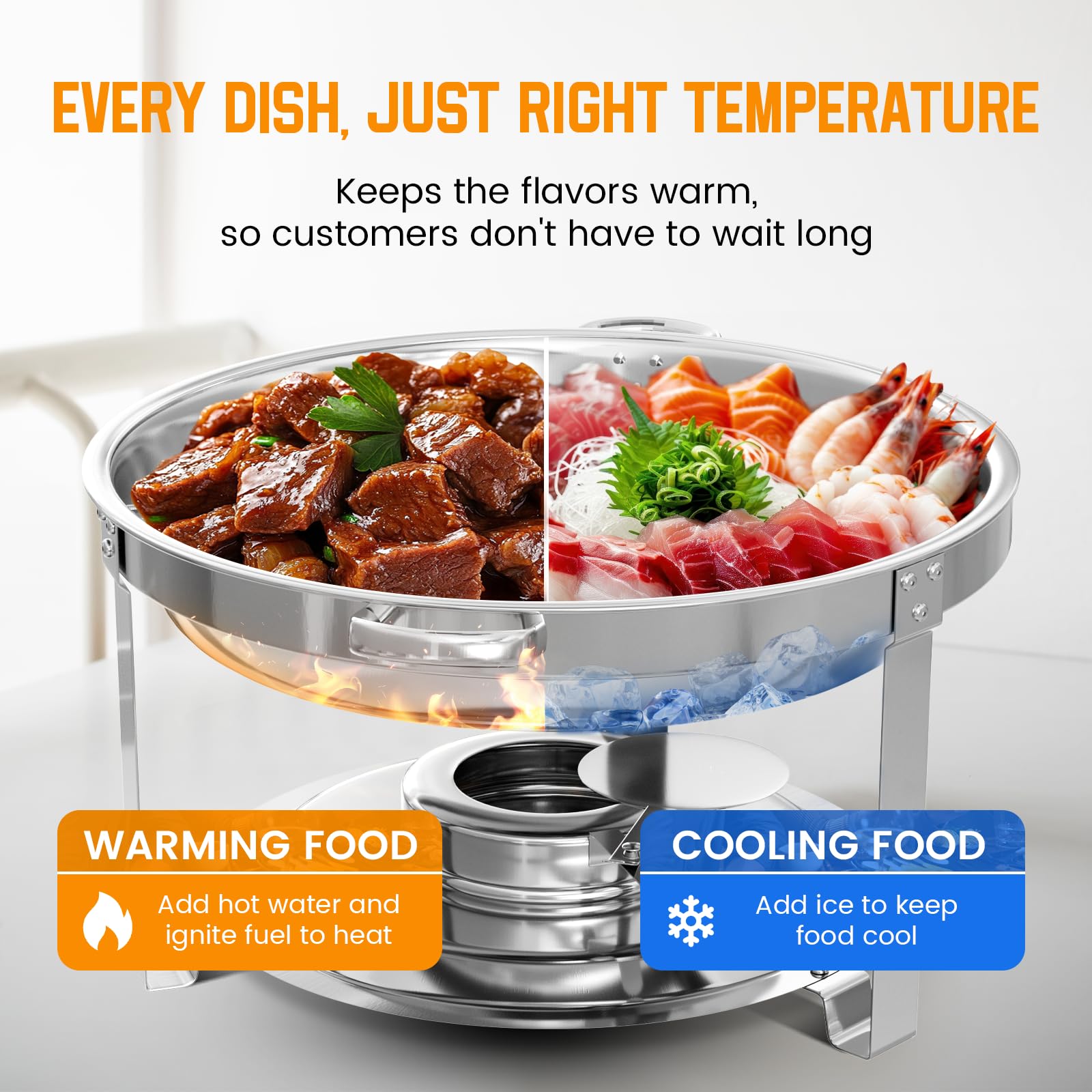 - Warm or Cold, Always Delicious: Maintain the perfect serving temperature with our chafing dish warmers. Add hot water for warmth or ice cubes to keep dishes cool, ensuring your guests enjoy every bite exactly as intended