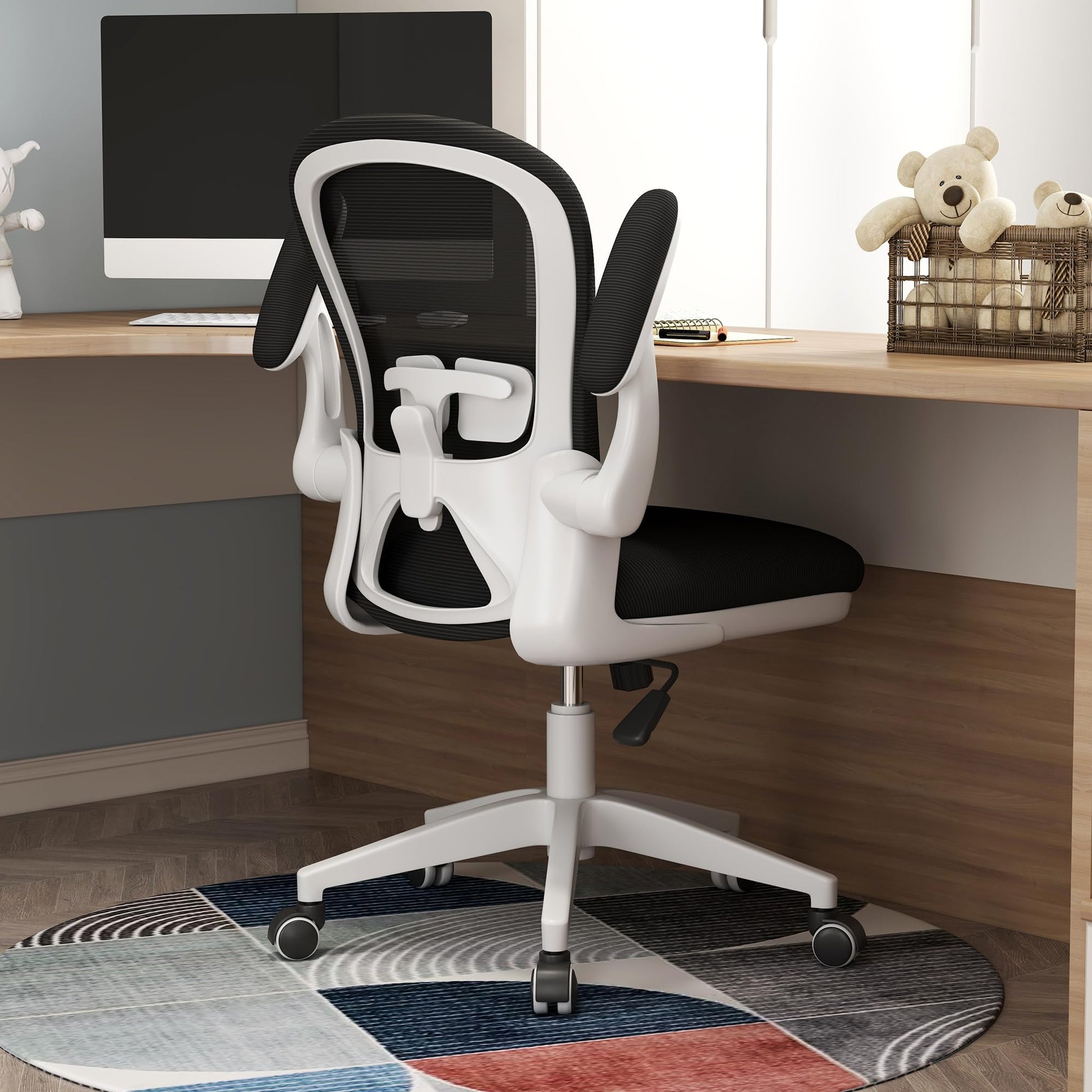 Apusen Ergonomic Home Office Desk Chairs Comfy Computer Gaming Chairs Mesh Arm Swivel Chairs of Adults for Home Office Bedroom(White)