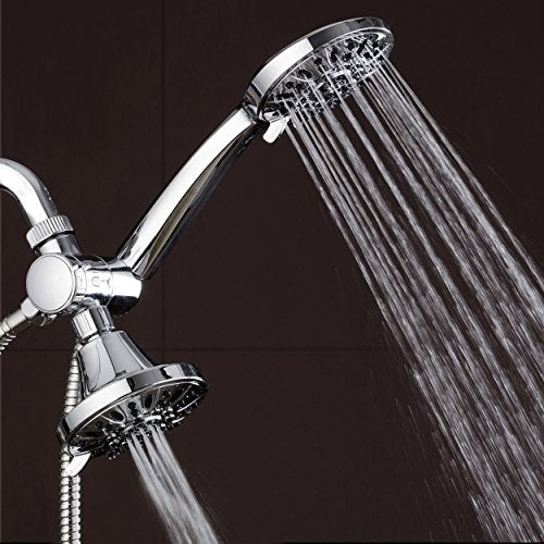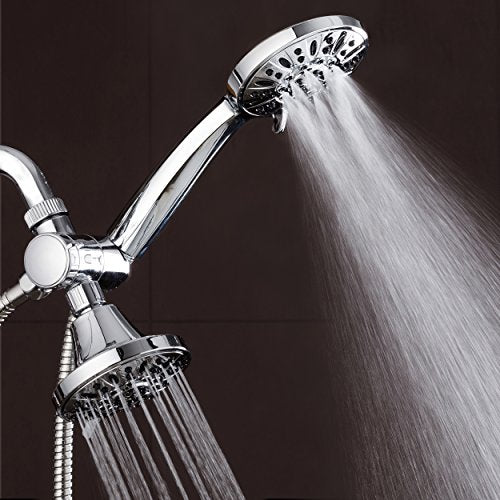 Details: Aqua Dance 30-Setting Premium 3-Way Shower Head/Handheld Shower Combo offers the Ultimate Shower Experience! You will love your new 3-Way Shower Combo System! Both showerheads have SIX FULL SPRAY SETTINGS. Patented 3-Way Diverter makes it easy to use each shower head separately or both together. Click-Lever Dial makes it easy to change from one setting to another while RUB-CLEAN JETS make cleaning your shower head easy! Water Saving Pause Mode is great for saving water in RVs and boats. Your order will arrive in an easy-to-open premium box that protects your product during shipping. No hard to open plastic casings, plain brown boxes or cheap poly bags! Each box contains 4" Chrome Face Shower Head, 4" Chrome Face Hand shower, Super-Flexible Stainless Steel Shower Hose, Patented 3-Way Diverter with Angle-Adjustable Bracket, Free Washers and Teflon Tape. Easy-to-follow Instructions make the installation process effortless! Aqua Dance 3-Way Shower Combo comes with hassle-free and easy to register LIMITED LIFETIME ! Contact us via or call our Customer Service and we will be happy to help you! Product Information Use shower heads separately or both together for your choice of 30-Settings (12 Full and 18 Combined Water Settings) Oversized 4" Chrome Face 6-Setting Shower Head and Oversized 4" Chrome Face 6-Setting Hand shower 6 Full Settings: Power Rain, Pulsating Massage, Power Mist, Rain/Massage, Rain/Mist, Water Saving Pause Mode 3-Zone Click Lever Dial with Rub-Clean Jets Patented 3-way Water Diverter with Anti-Swivel Lock Nut Angle-Adjustable Overhead Bracket