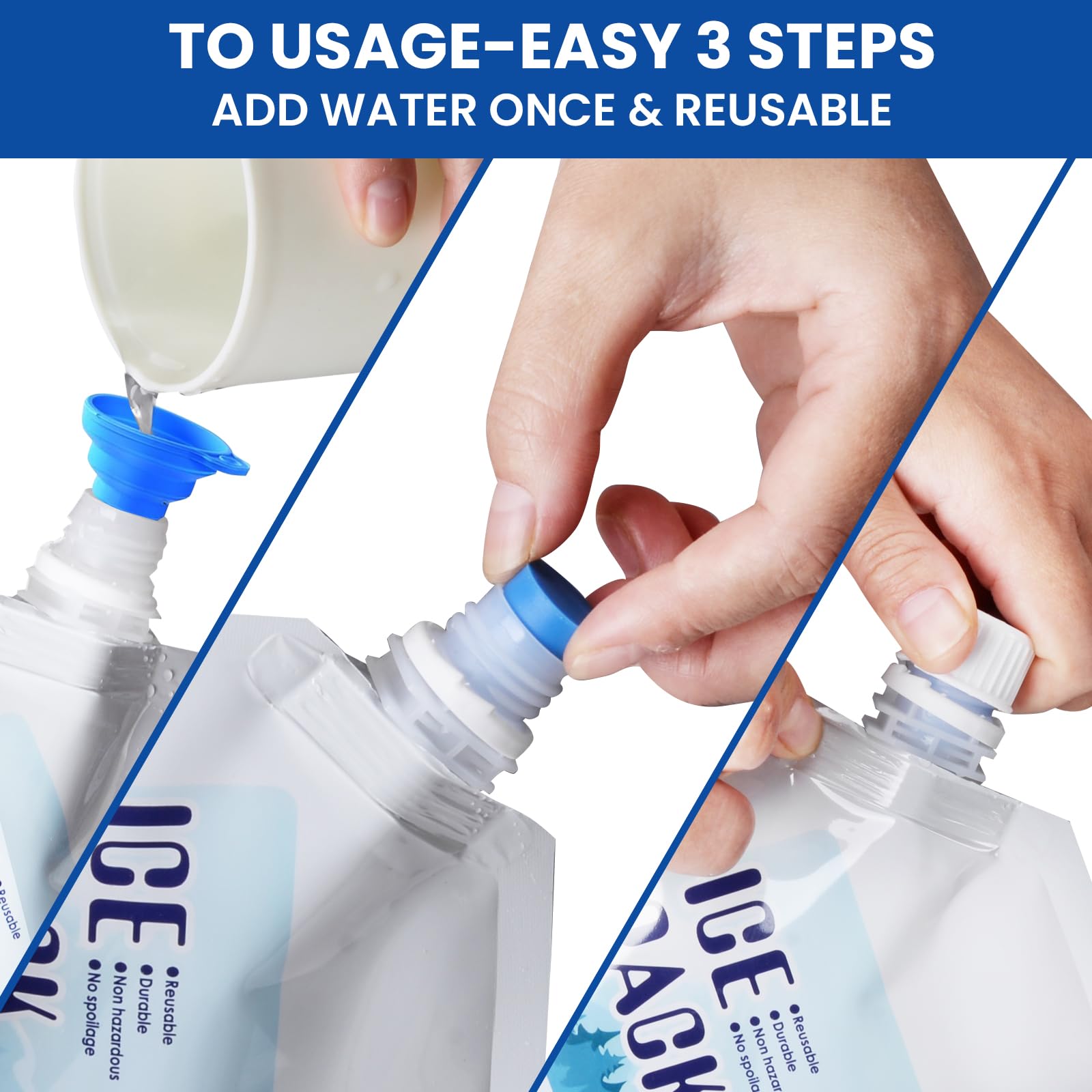 - EASY TO USE: The inside of the ice pack is filled with a proprietary cooling gel mixture, lunch bag ice pack reusable will turn into a solid block when frozen. Before using, add water once using the funnel,shake and seal,freeze overnight until ready to use,which creates a reusable ice pack.