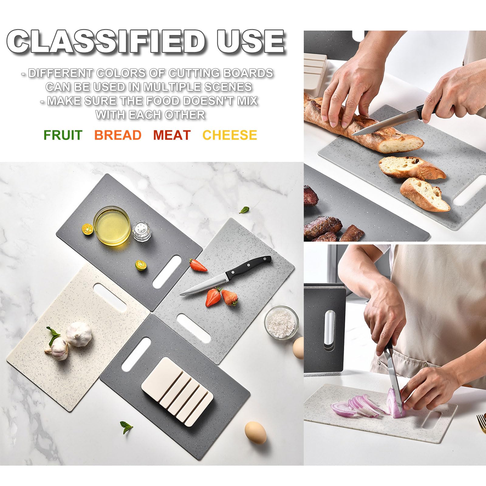 - 1.Superior Quality:The Aroplor Plastic Cutting Board Set is made of high-quality materials, ensuring durability and long-lasting use.Our cutting boards are designed to withstand heavy chopping and cutting, providing a reliable and sturdy surface for all your kitchen tasks.