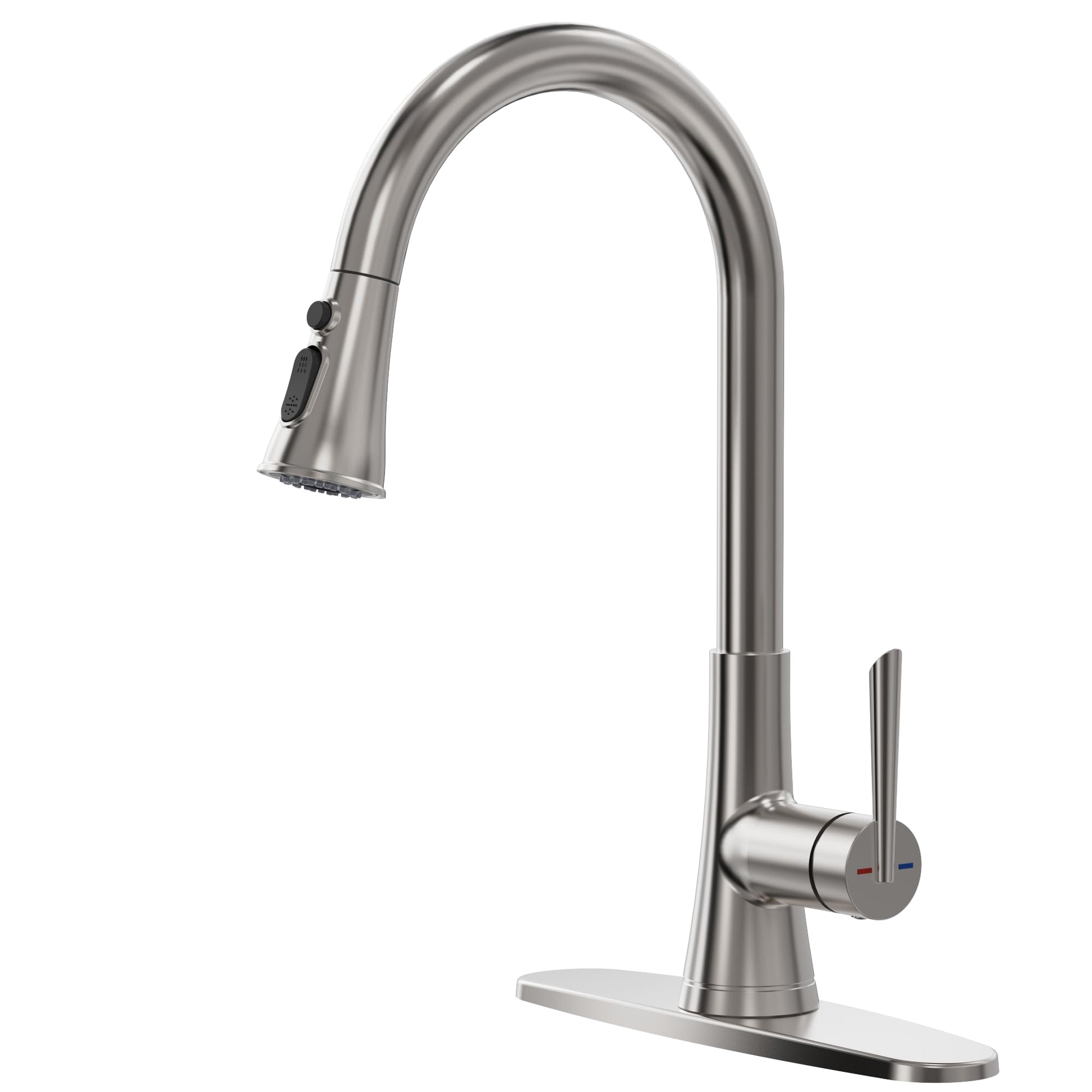 ARRISEA Pull Down ktichen Faucet, Stainless Steel, RV Faucets, Kitchen Sink Faucet with 10'' Deck Plate,Brushed Nickel Single Handle Laundry Sink Faucet with Three Modes Sprayer, Farmhouse Tap