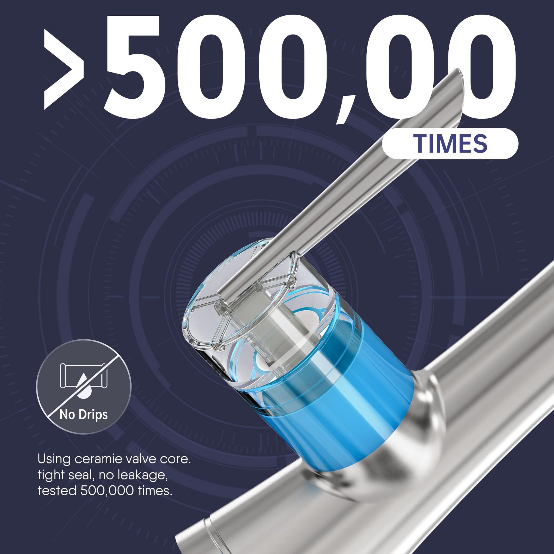 - SIMPLE CLEANING IN ADVANCE: Our stainless steel kitchen faucets features a durable five-layer nanotechnology finish, resisting rust and spots without peeling or discoloration. Simply wipe it down with a damp cloth for a clean and tidy look, saving you time for family activities.