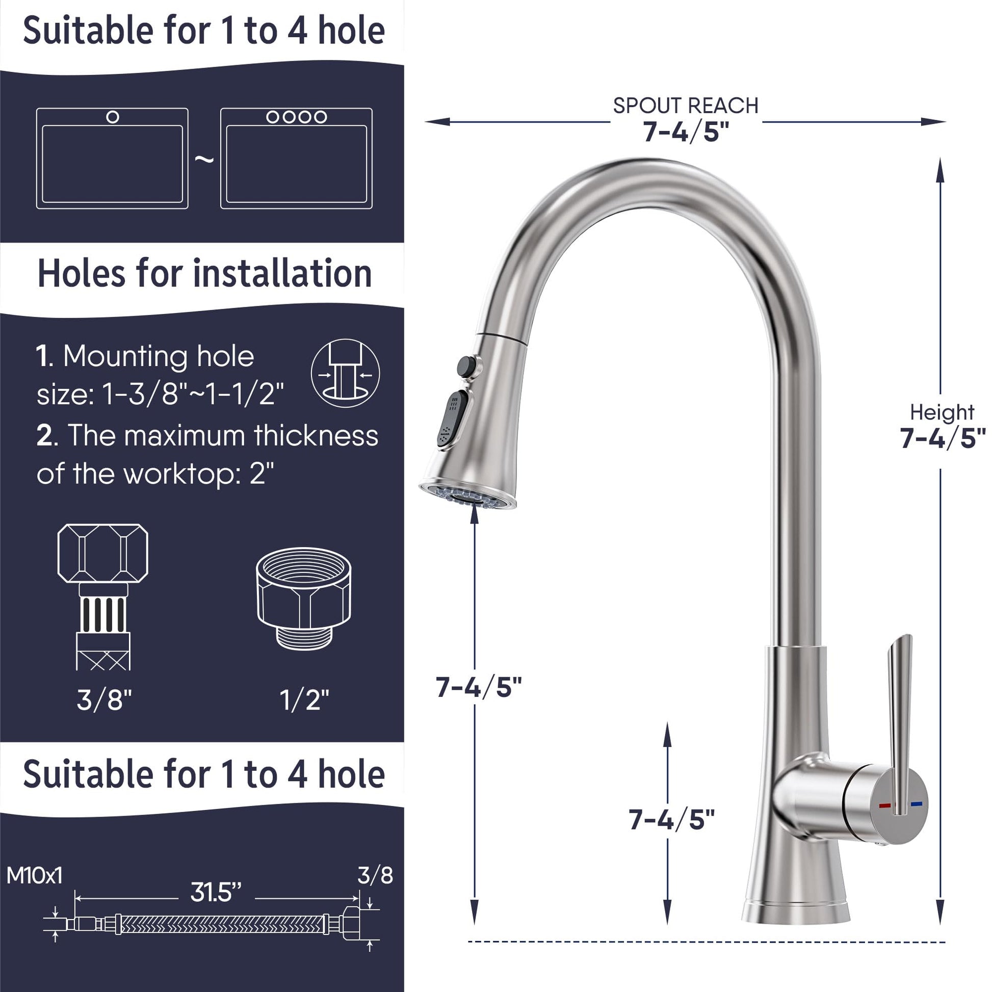 - Easy to install : Install our kitchen faucet effortlessly with just one person. Our faucet includes a 10’’ deck plate suitable for sinks with one, two, or three holes, ensuring versatility. All mounting hardware is included. Get your ARRISEA kitchen faucet up and running in less than 15 minutes, no professional help is needed!
