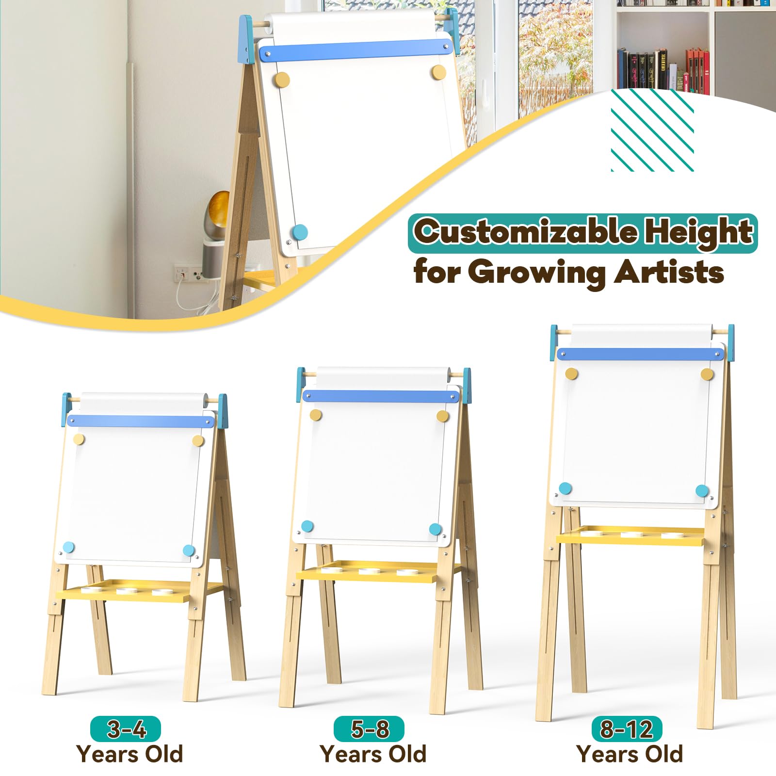 - Height-Adjustable for Growing Artists:Designed for kids of all ages, the easel features a fully adjustable height system without preset slots, providing a perfect fit as your child grows.