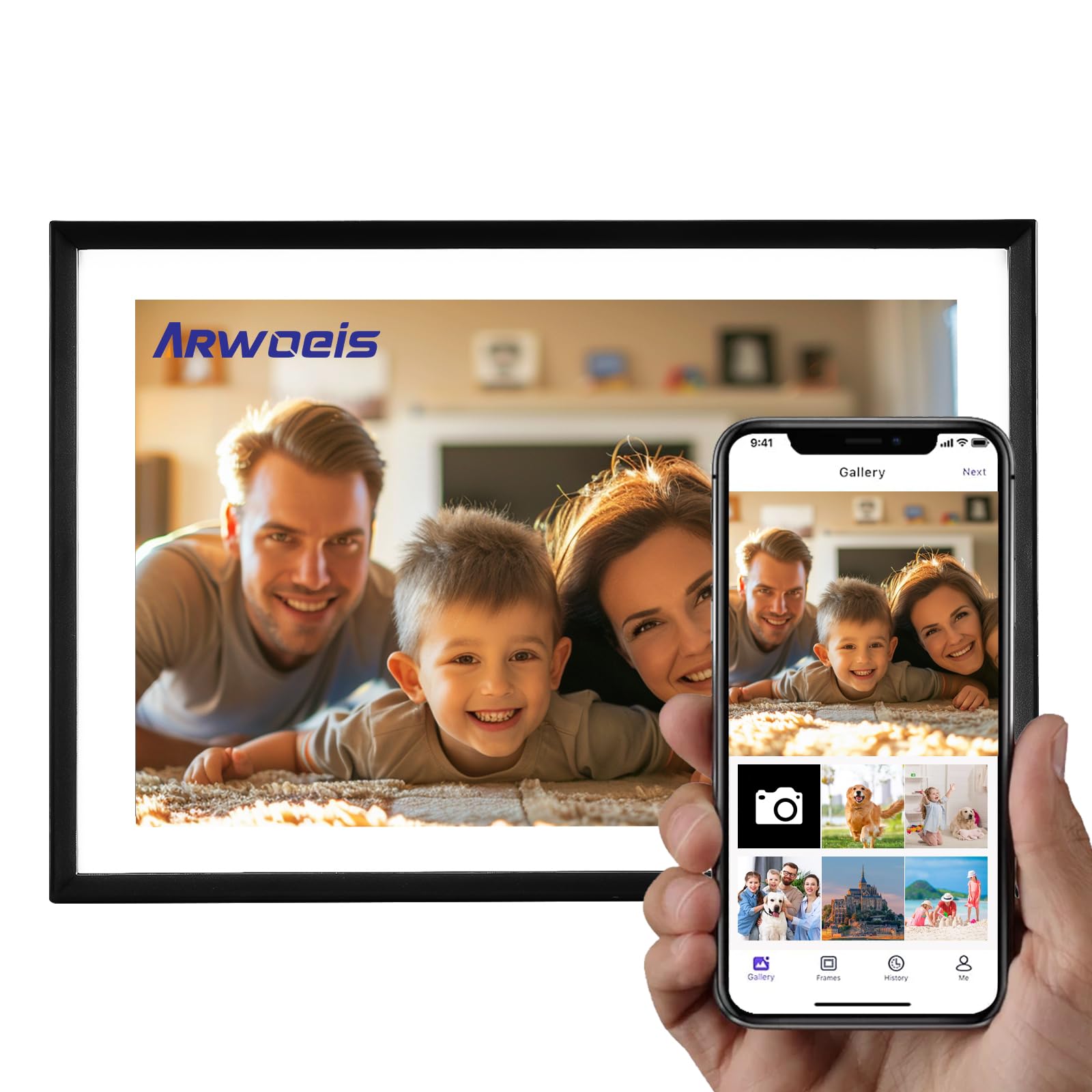 ARWOEIS 10.1 Inch WiFi Digital Picture Frame, 1280x800 HD IPS Touch Screen Digital Photo Frame with 16GB Storage, Auto Rotation, Share Photos Or Videos for via APP