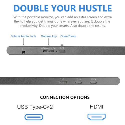 - Ultra-slim Portable Monitor - As a portable monitor for laptop, ARWOEIS portable laptop monitor's body is made of aluminum alloy, the weight of the whole machine is 1.8lb, 0.3" ultra-thin profile,With our magnetic smart holster, you can use and store it anytime. portable laptop monitor easily accommodate to every suitcase and backpack and stress-free when you are holding it for a long time.so you can carry it with you. They are truly portable computer monitors for travelers, students, gamers,engineers, and every.