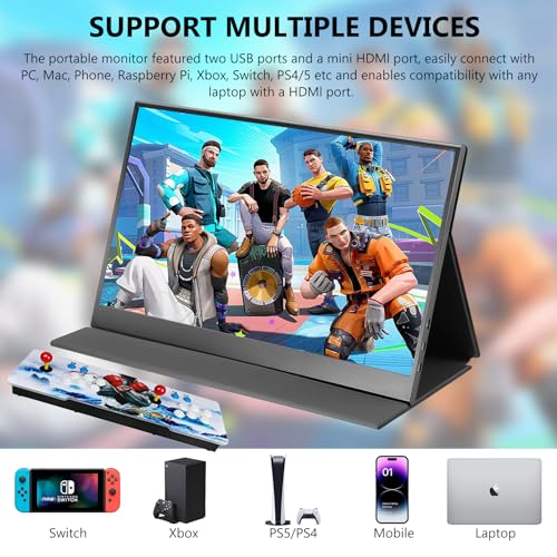 ARWOEIS Portable Monitor 15.6" 1080P FHD IPS Travel Monitor,USB-C HDMI Portable Monitor for Laptop,PC,Mac Phone,Xbox,Swich,PS,w/Premium Smart Cover,VESA Support