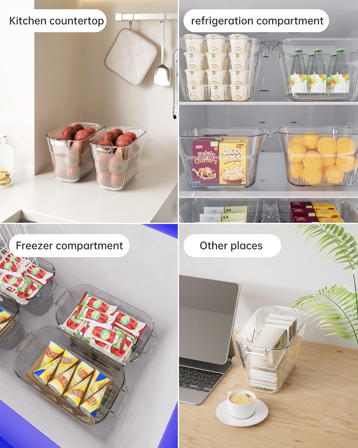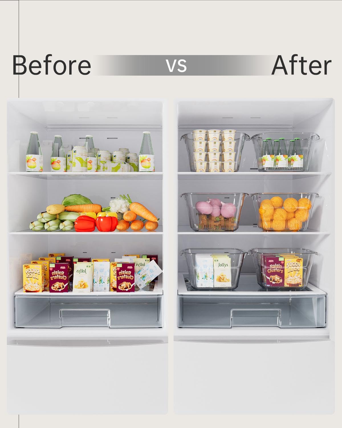 - Transform your fridge into a clutter-free haven with our PET Storage Bins. Our Asnap fridge-organized bins are designed to maximize functionality and aesthetics. Perfect for families, these spacious containers make snacks and essentials easily visible and accessible, eliminating the bulky, unattractive packaging that takes up precious space.