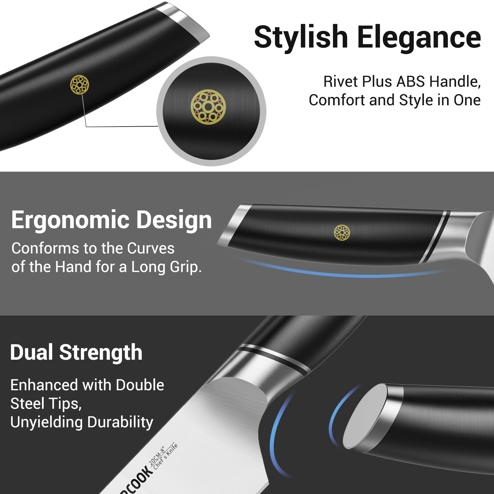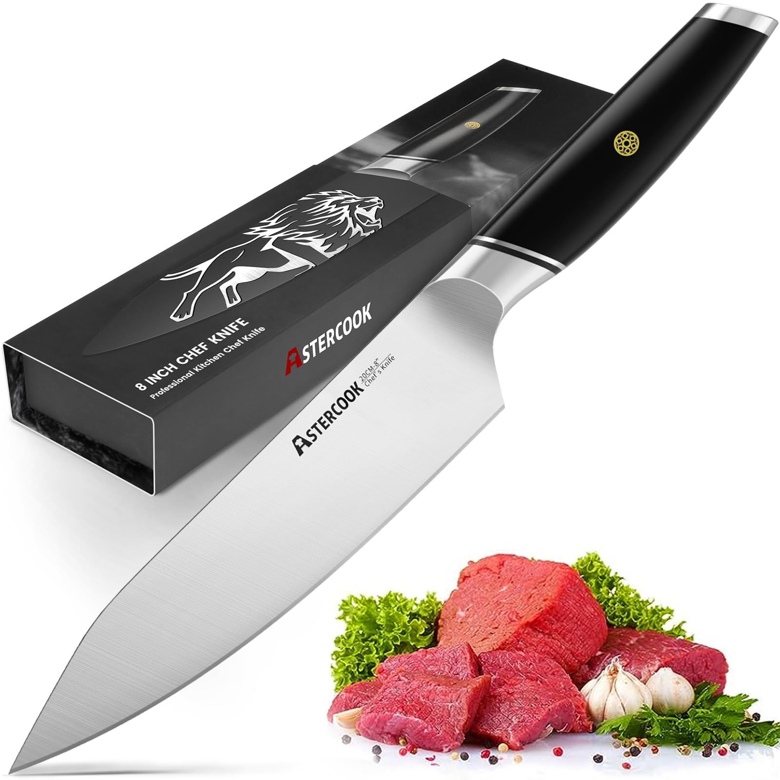 - 【Versatile and Ideal for Gifting】With an 8-inch blade, our chef knife easily cuts through meat, vegetables, fruits, and more. It's the perfect gift choice for both culinary enthusiasts and novices alike. Elevate your culinary journey or delight someone special with this masterpiece of cutlery.