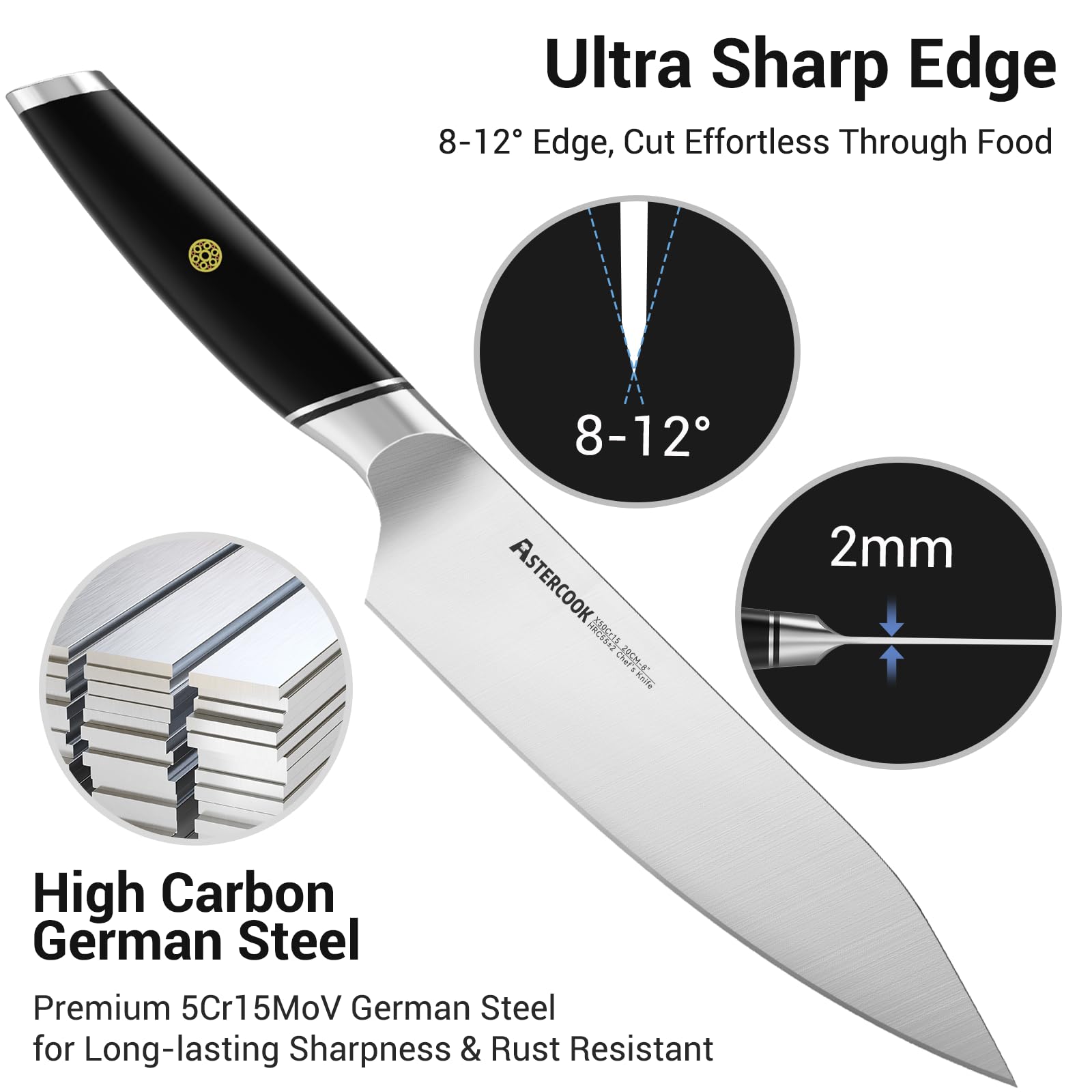 - 【German Steel Durability】Crafted from 5Cr15MoV German high carbon stainless steel, our knife offers sharpness that resists rust. It's not just a kitchen tool; it's a trusted companion that endures the test of time. Enjoy the sharp edge that lasts.
