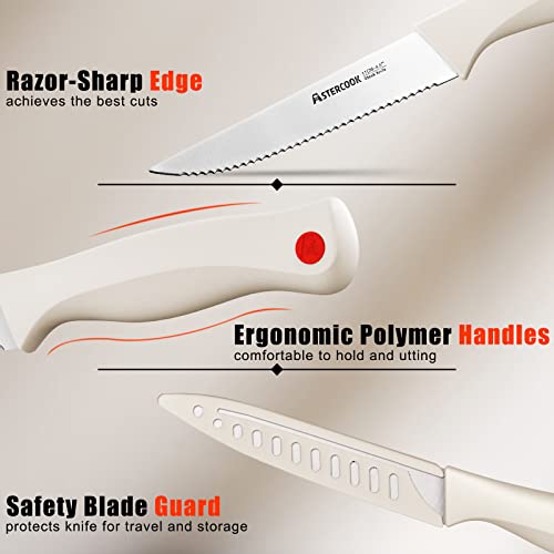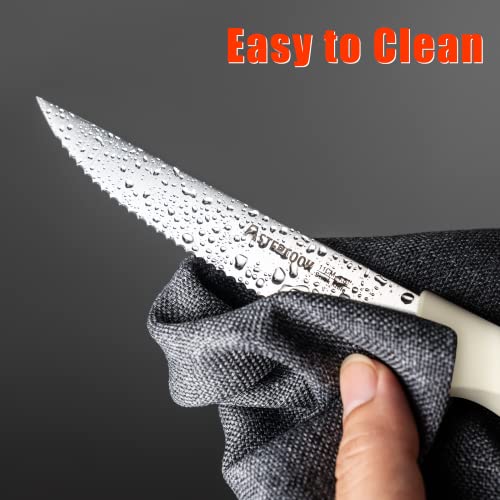 Astercook Steak Knife, Steak Knives Set of 8 with Sheath, Dishwasher Safe High Carbon Stainless Steel Steak Knife with Cover, White