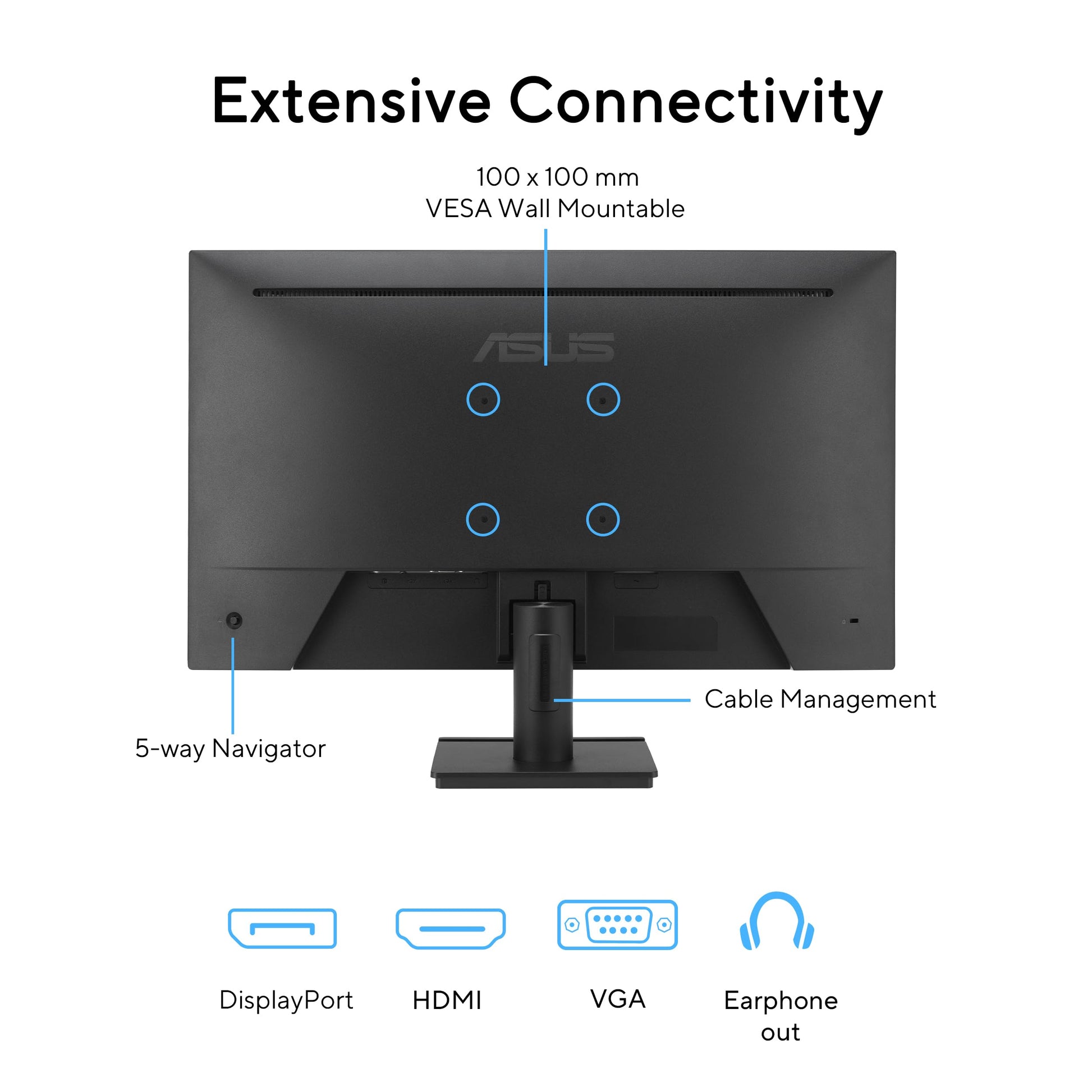 - Rich connectivity features HDMI, DisplayPort and VGA, plus earphone jack