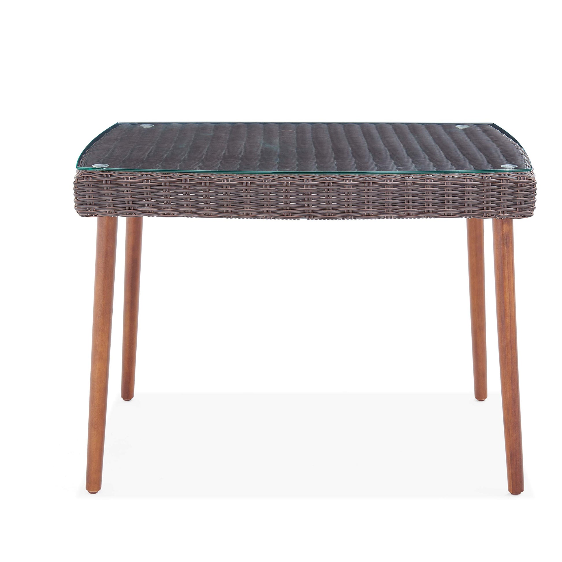 Details: Create a cozy, modern oasis in your outdoor space with the Athens All-Weather Wicker Outdoor 26"" H Cocktail Table with Glass Top. From its dark brown wicker seat and dark wood legs to its glass top, this unique and versatile table provides plenty of resting space for all of your outdoor accessories, books and favorite morning beverages. Perfect for porches or patios, the durable, all-weather wicker construction ensures that this table will stand up to all of the elements and provide a cozy spot for sitting and relaxing for many years to come. Whether you pair it with different chairs, benches, or cushions for a complete modern look, you’re sure to enjoy a perfect spot to kick back and relax. This multi-functional table has overall dimensions of 24"" W x 35"" D x 26"" H and is perfect for any outdoor space. The Athens All-Weather Wicker Outdoor 26"" H Cocktail Table with Glass Top is a great addition to any patio, deck, balcony, or other outdoor setting, as it is crafted to be weather-resistant, waterproof and built to last. This arm chair is part of a larger line of outdoor furniture, offering arm chairs, benches, and seating sets with cushions that balance its modern, tropical look. Includes reliable construction, this outdoor furniture is sure to keep you, your family and your friends comfortable for many years to come."