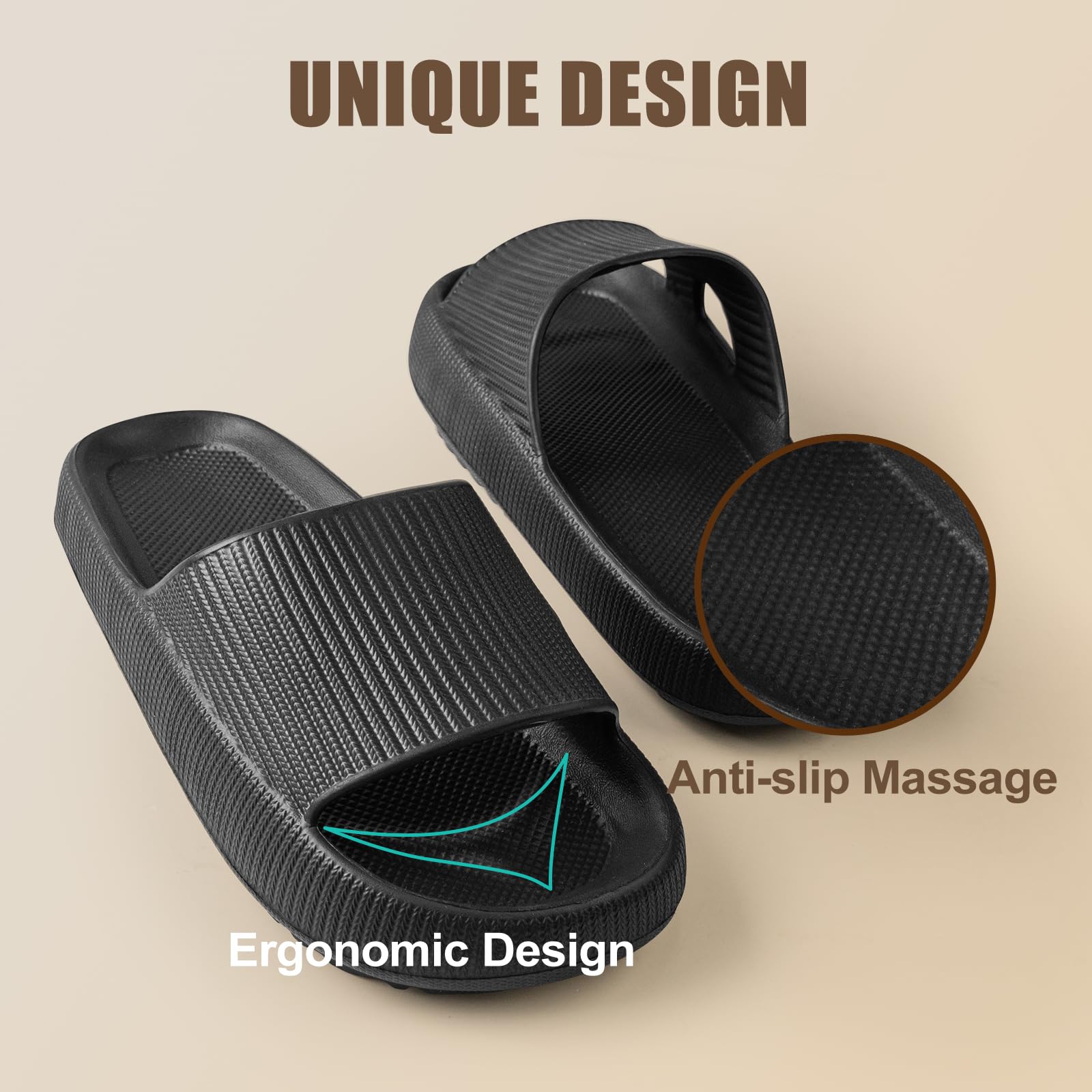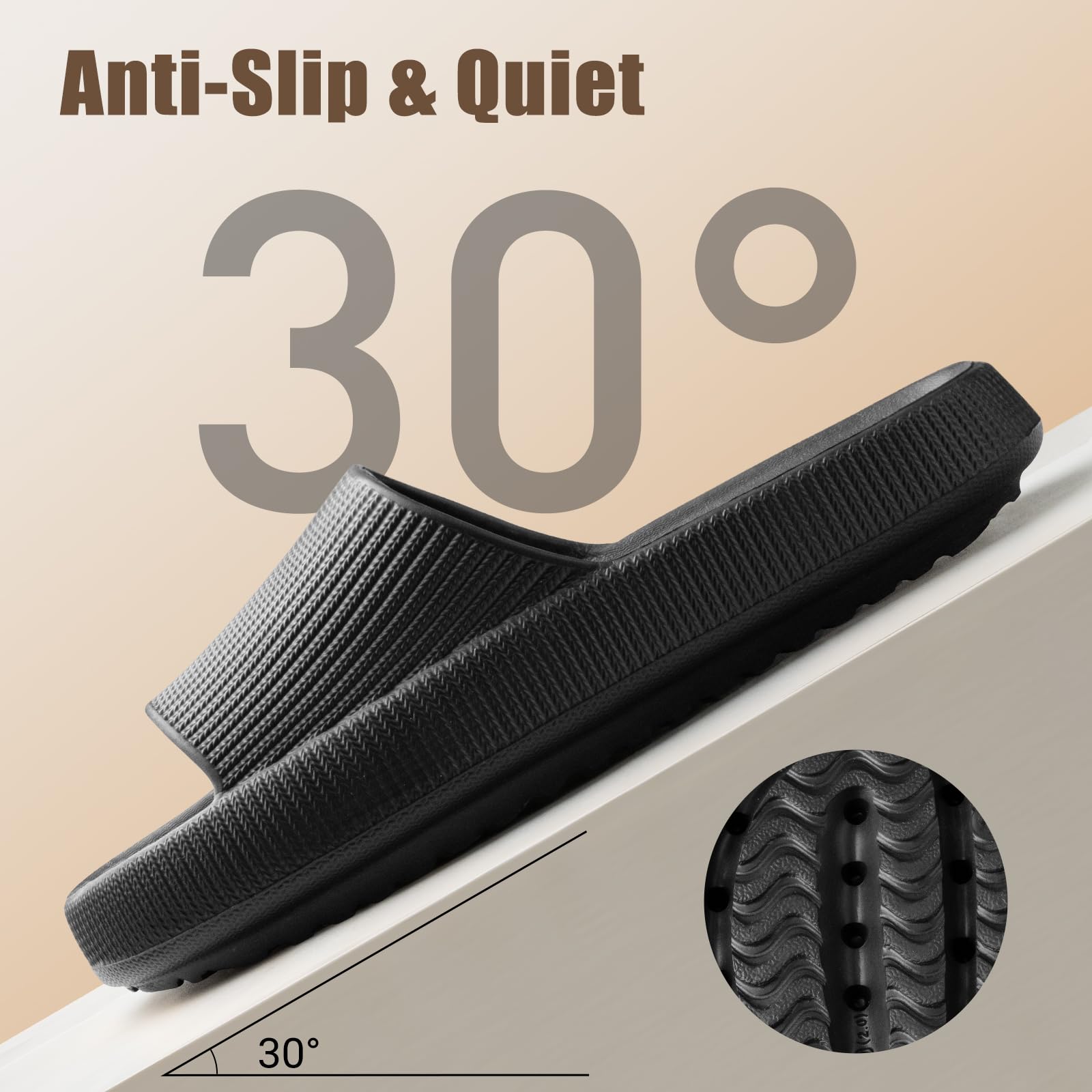 - 【Anti-slip design】 - Adopting a dual track pattern as the sole pattern, our cloud sandals can increase the anti-slip performance by 200% compared to regular patterns, allowing you to use it with peace of mind in rainy days or bathrooms. At the same time, high-quality materials allow sandals to be easily rinsed and dried after being wet, and can be reused without any odor.