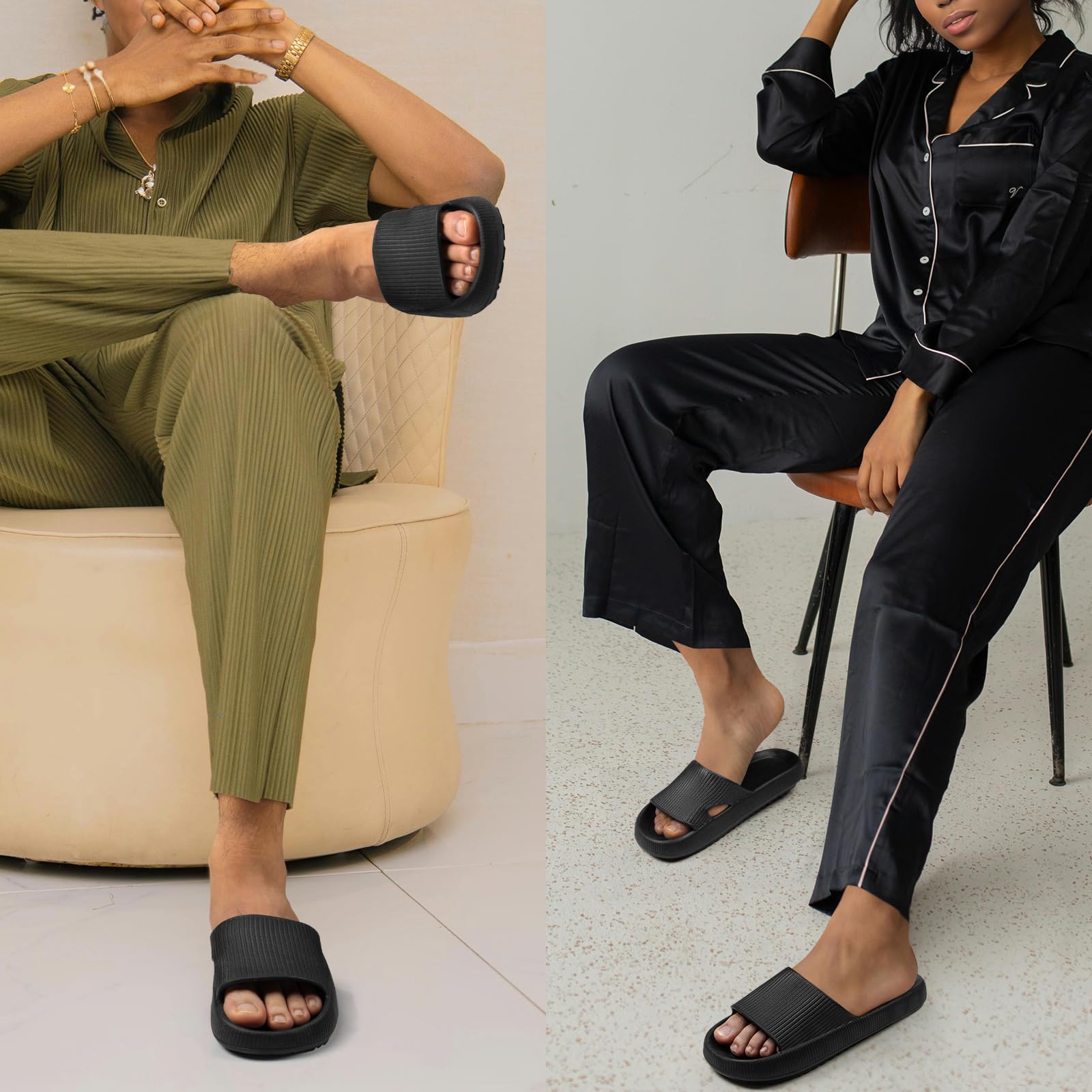 - 【Suitable for Occasions】 - Perfect for summer wear, beach, shower or casual wear indoor or outdoor. Like taking a shower at home, taking a walk in the garden, strolling in the community, walking dogs, on the beach, in the swimming pool. Foam slides had more cushion for around the house and in the garden, also can be worn even with winter thick socks.