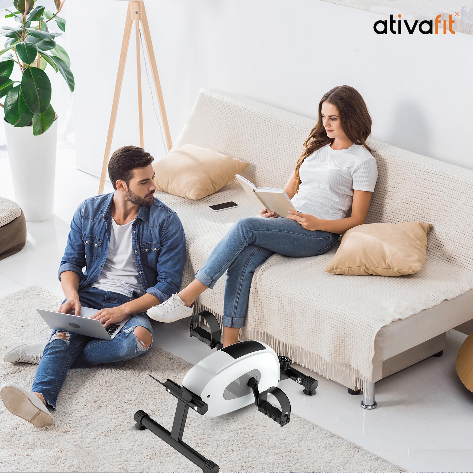Ativafit Magnetic Under Desk Bike Pedal Exerciser for Home Workout Portable Mini Exercise Bike Arm & Leg Exerciser Physical Therapy Equipment for Seniors (White)