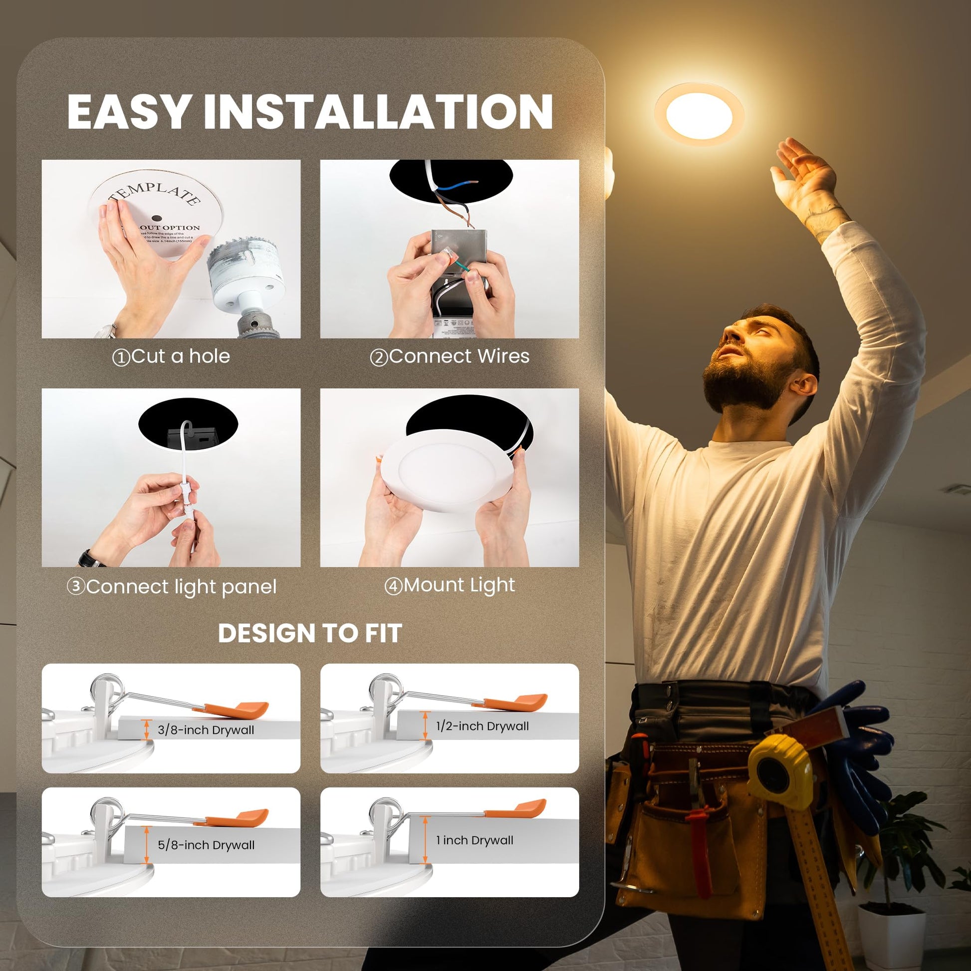 - Easy Installation: The canless led lights come with easy set up instructions. By following these steps: cut a hole with the included template, then connect the light and wires with the included quick connectors, and finally mount it to the ceiling with the spring clip.