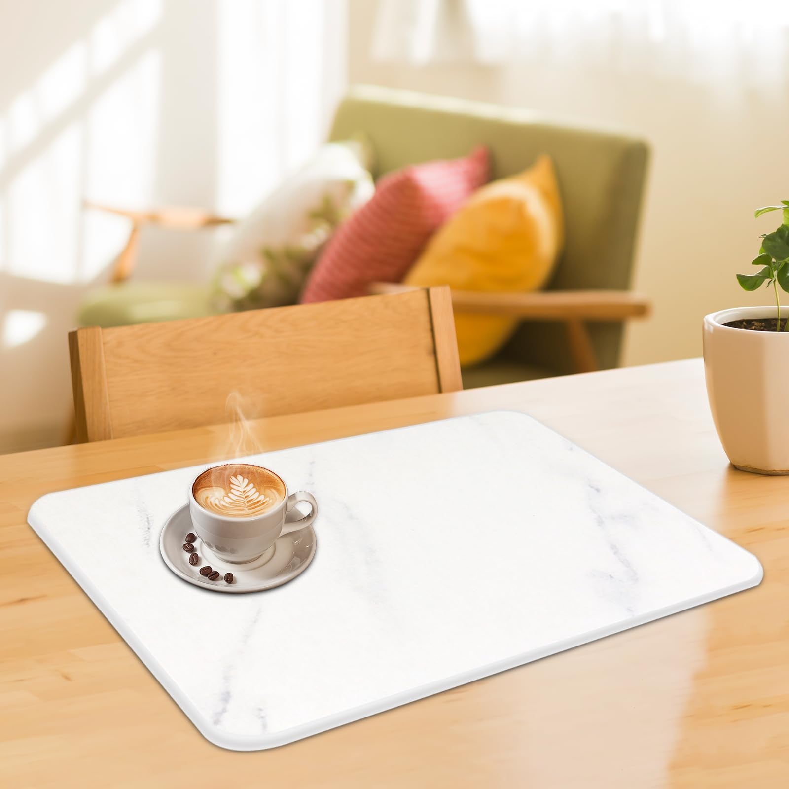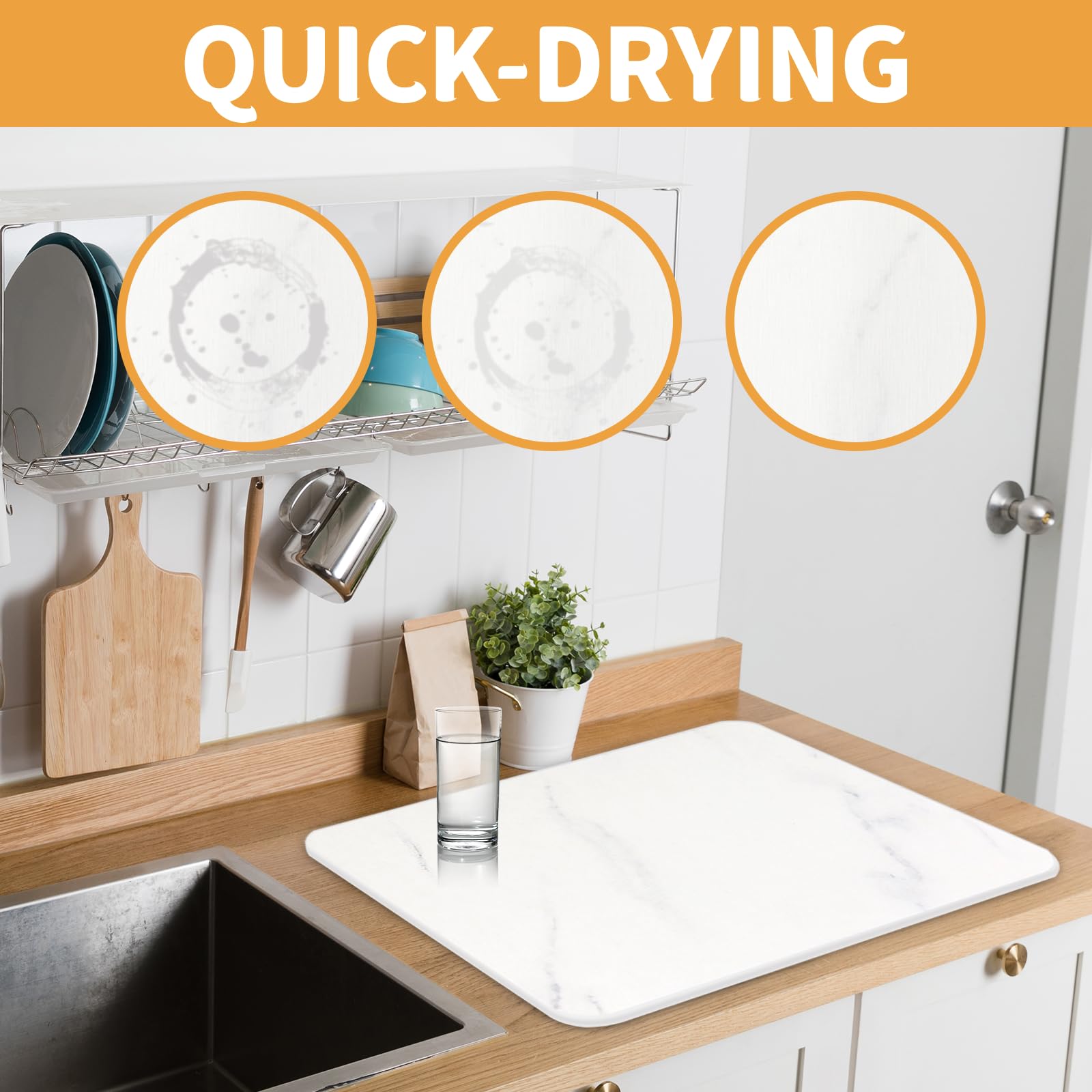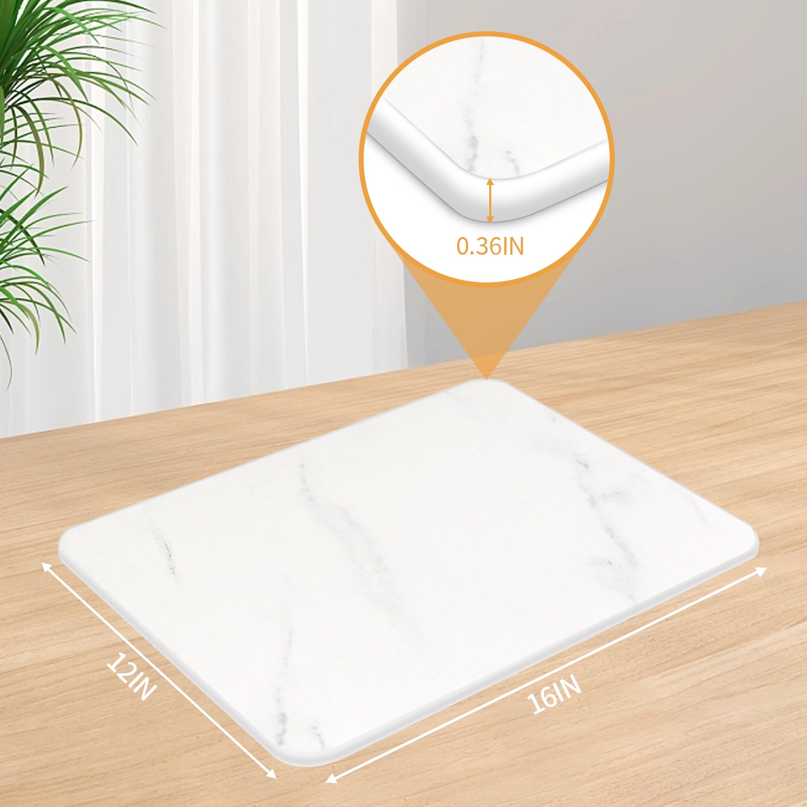 auievkon Stone Dish Drying Mat ,Absorbent Marble White Dish Dry Pad,Quick-drying Mats, Heat Resistant Frosted Texture Non-Slip Rack Tableware Mat (16*12IN)