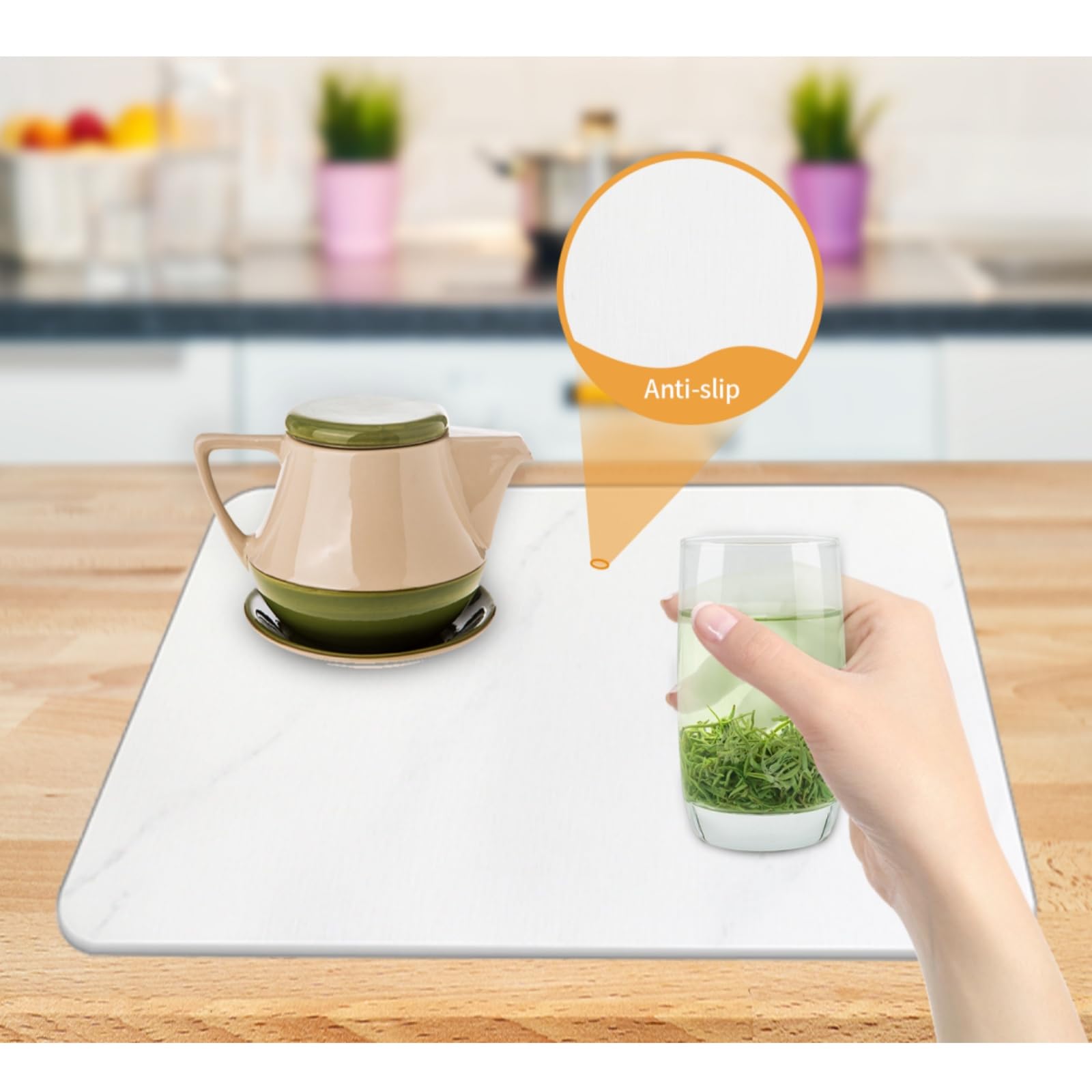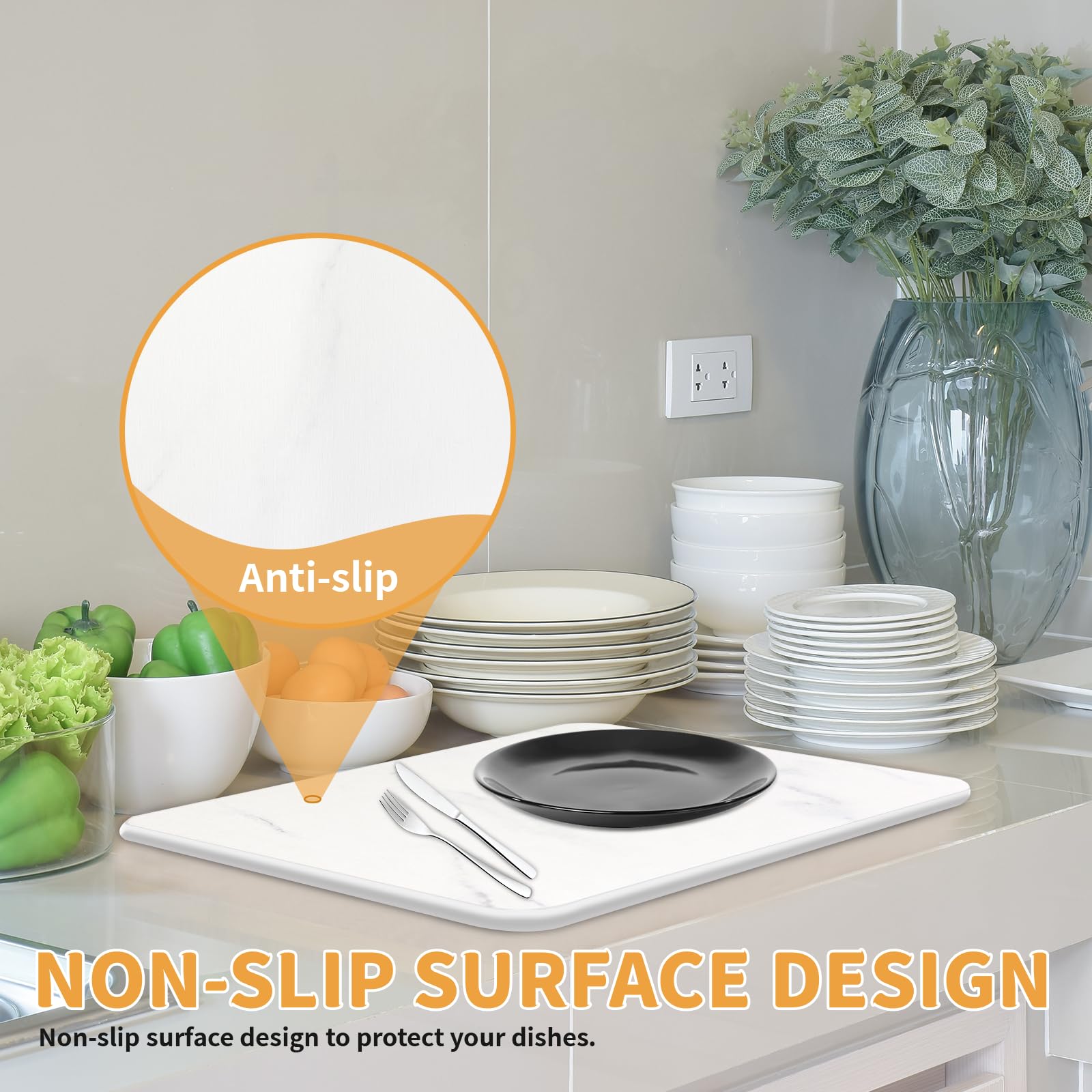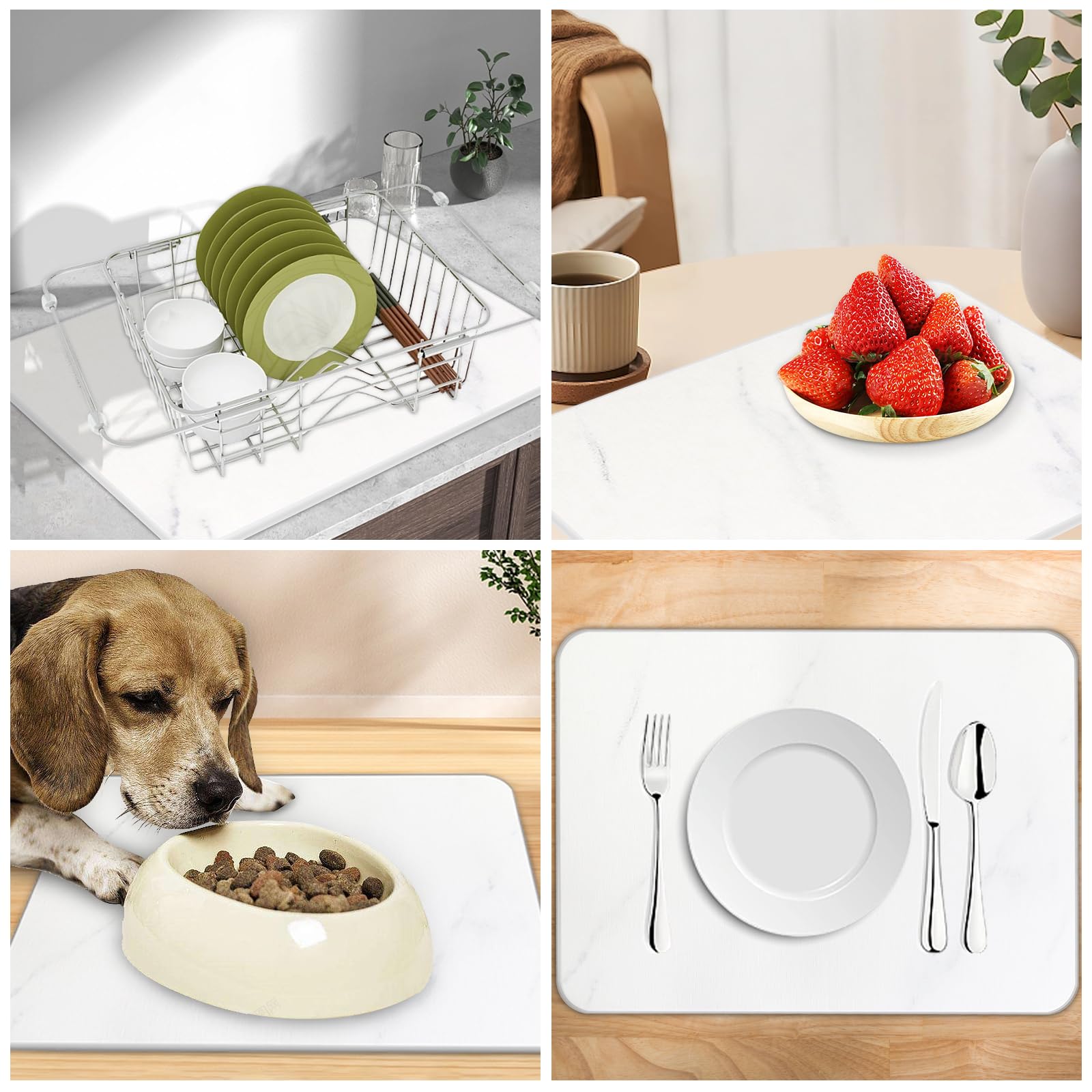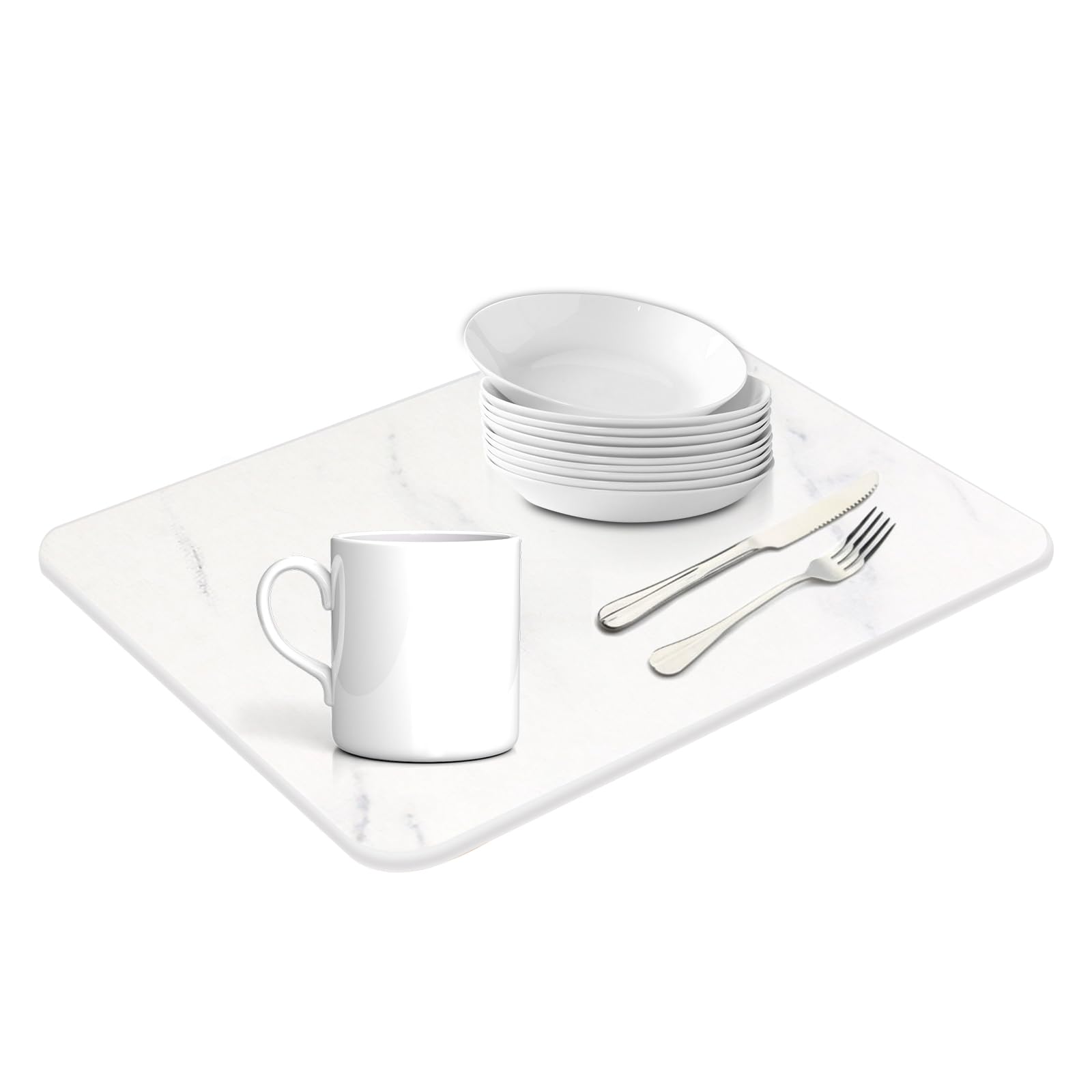 auievkon Stone Dish Drying Mat ,Absorbent Marble White Dish Dry Pad,Quick-drying Mats, Heat Resistant Frosted Texture Non-Slip Rack Tableware Mat (16*12IN)