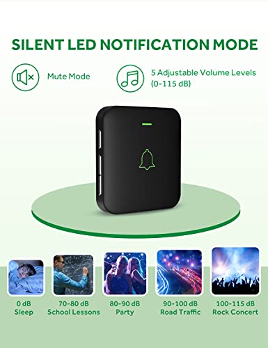 AVANTEK Wireless Doorbell, Mini CB-11 Waterproof Doorbell Chime Operating at 1000 Feet with 52 Melodies, 5 Volume Levels & LED Flash