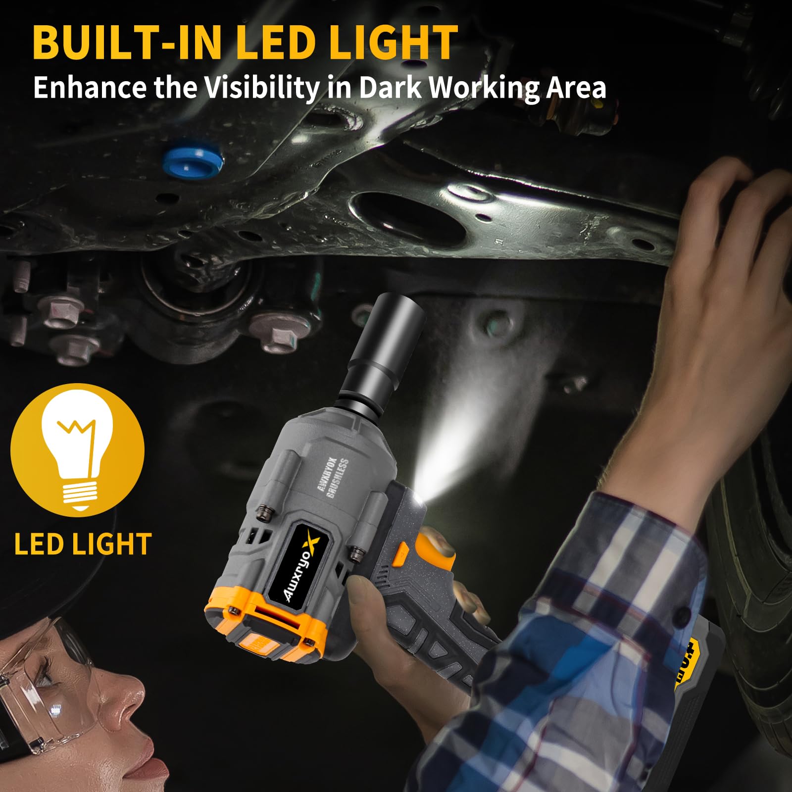 - 10-Second High Brightness LED Bead - AwxryoX cordless electric wrench has upgraded the LED bead, 26% brighter and 39% longer life, and added 10-second brightness extension function, one click of the trigger will keep the light bead on for 10 seconds, which is convenient for nighttime emergencies, and helps you to light up in the darkness