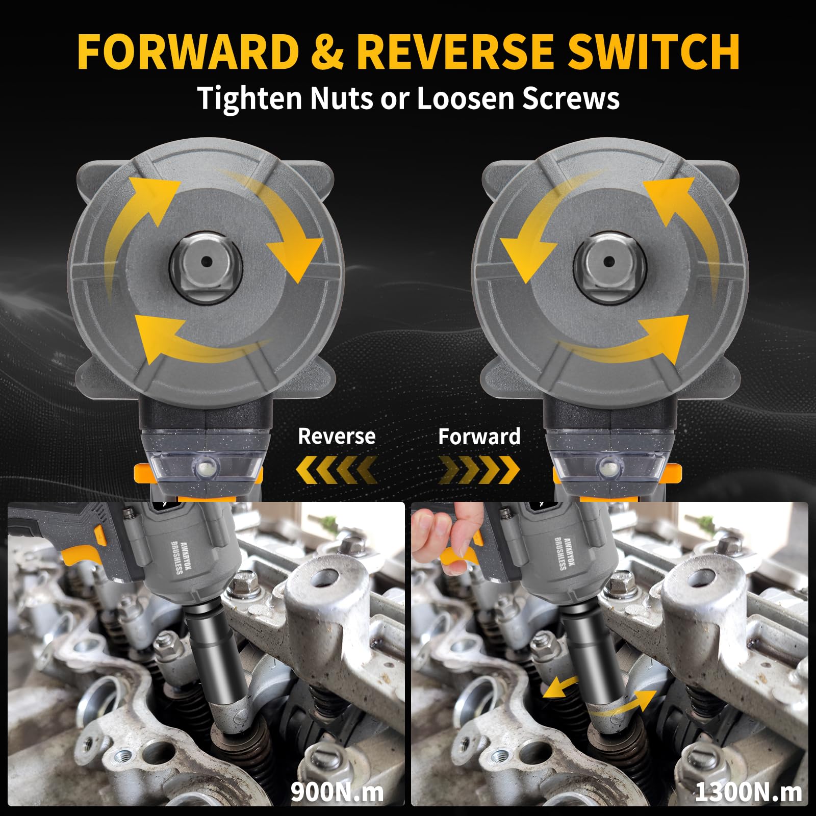 - A Truly Heavy-Duty Electric Wrench - the AwxryoX electric wrench has been re-upgraded with a brushless motor that gives it 23% more power, 42% longer life, and a maximum torque of up to 1,300 NM! (959 Ft-lbs.) Ideal for heavy-duty tasks, whether you're tearing down a tire, repairing a car, or carrying out construction work, the AwxryoX electric wrench is perfect for professionals and DIY'ers alike, thanks to its high torque and reliability