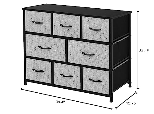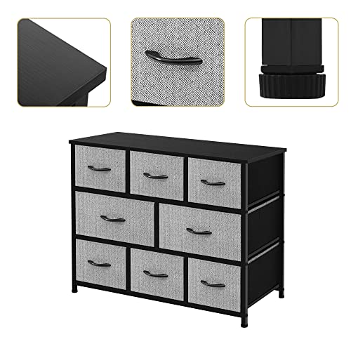 AZL1 Life Concept Extra Wide Organizer 8-Drawer Closet Shelves, Dressers Storage Chest for Bedroom, Living Room, Hallway & Nursery with Easy Pull Fabric Bins Wood Top, Grey with Black