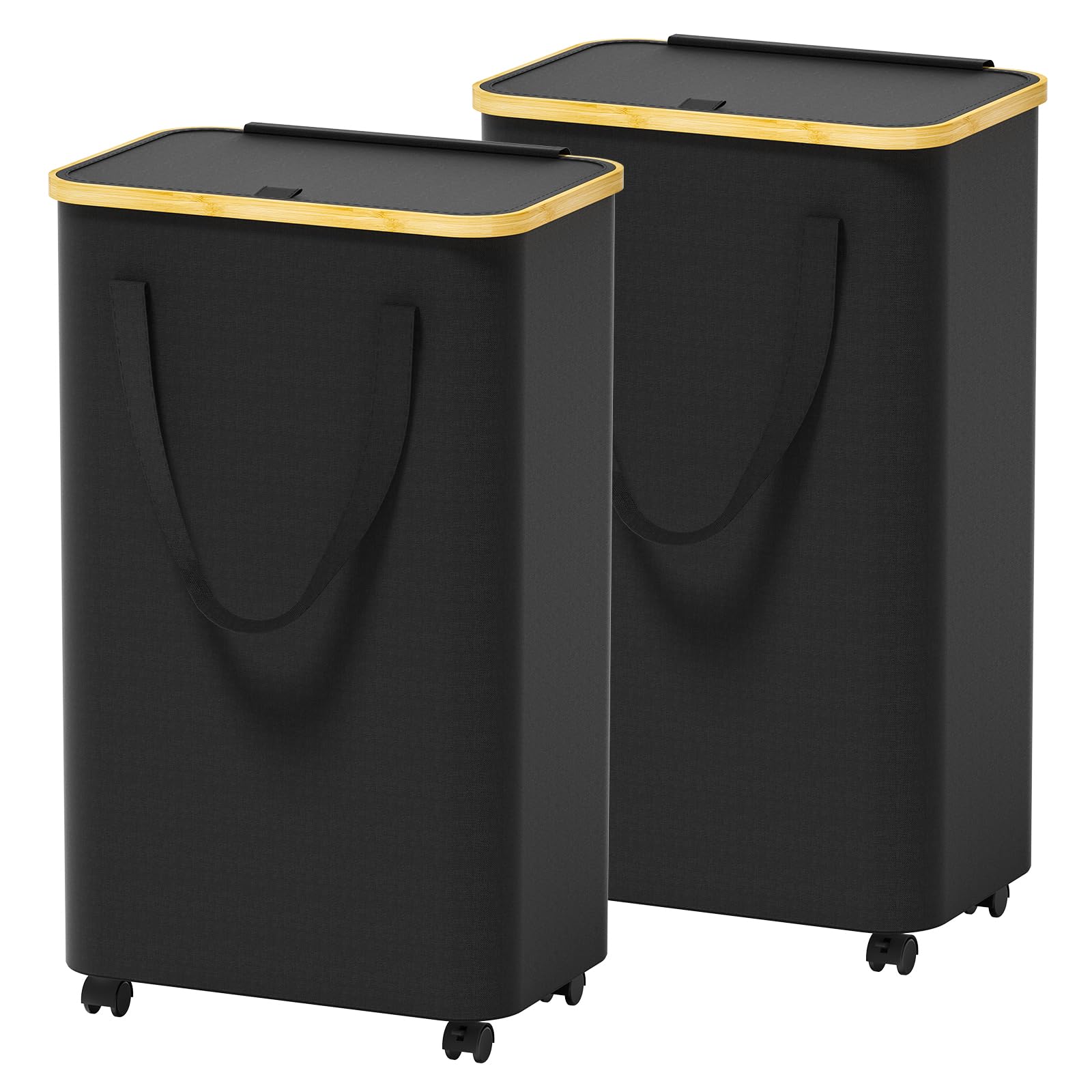 Azlafu Rolling Laundry Basket with Wheels 2-Pack, 75L Tall Slim Laundry Hamper with Lid, Waterproof Dirty Clothes Hampers for Laundry, Bedroom, Bathroom, Black Hamper with Handles for Clothes and Toys