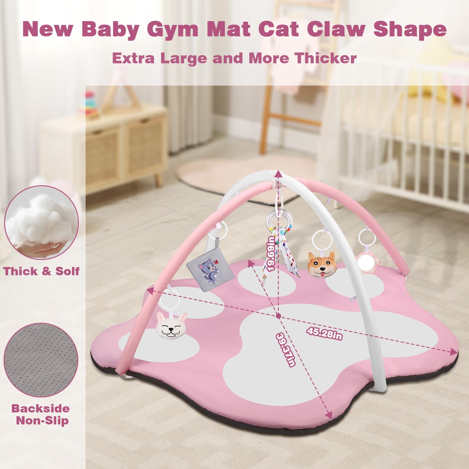 - Help Baby All-Round Early Development:The activity gym mat has 5 detachable toys which fully engage 5 senses as your baby play and accompany your child's growth. Including baby self-discovery mirror for improving cognition, ringing toy for stimulating hearing and touch, cat and dog toy for hearing, cloth book for visual and tactile training