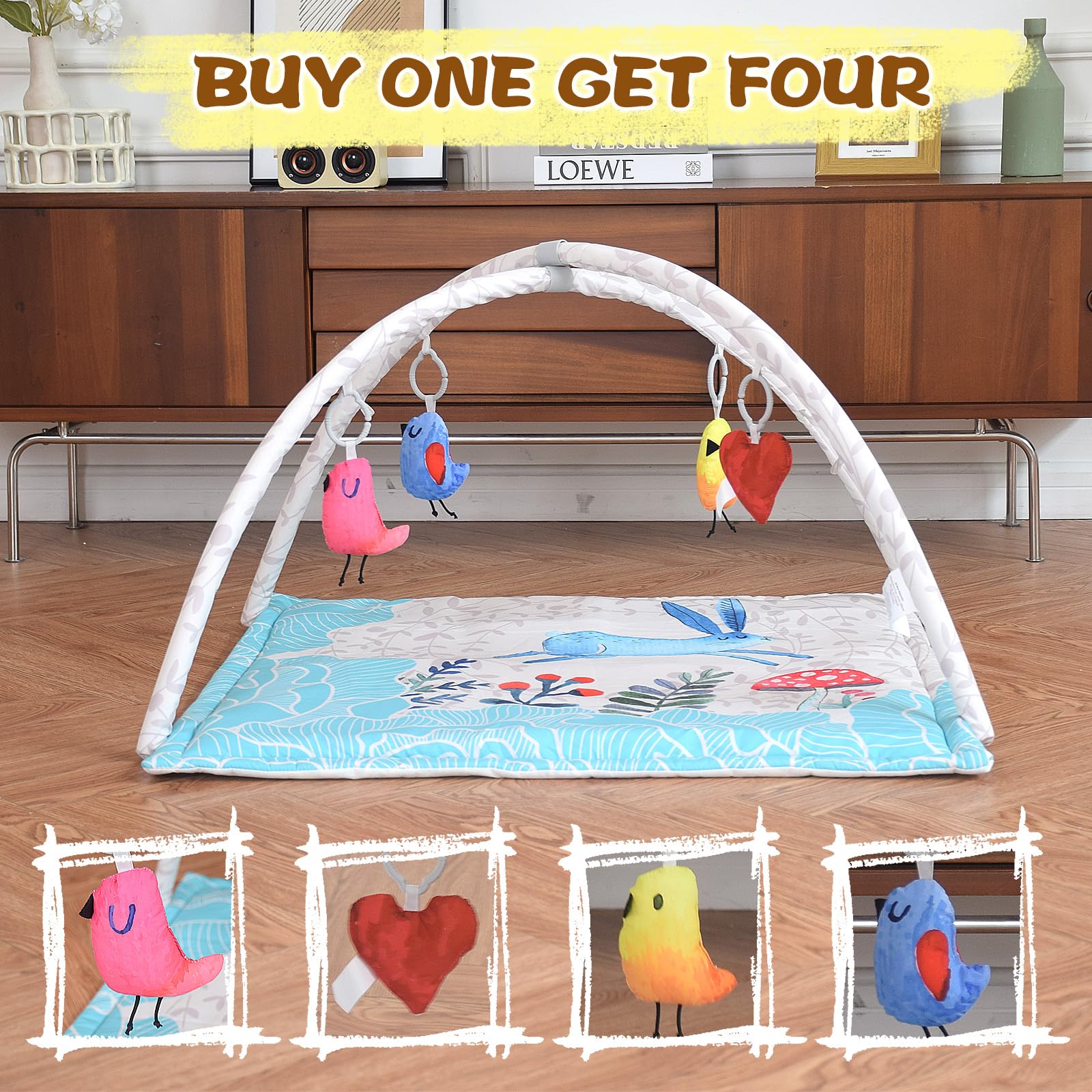 - [Enhancing Sensory Development]: Our baby activity center is a haven of joy. With 4 engaging toys, it activates your baby's senses and fosters curiosity. Under adult watch, allow your baby to play unrestricted on this infant playmat.
