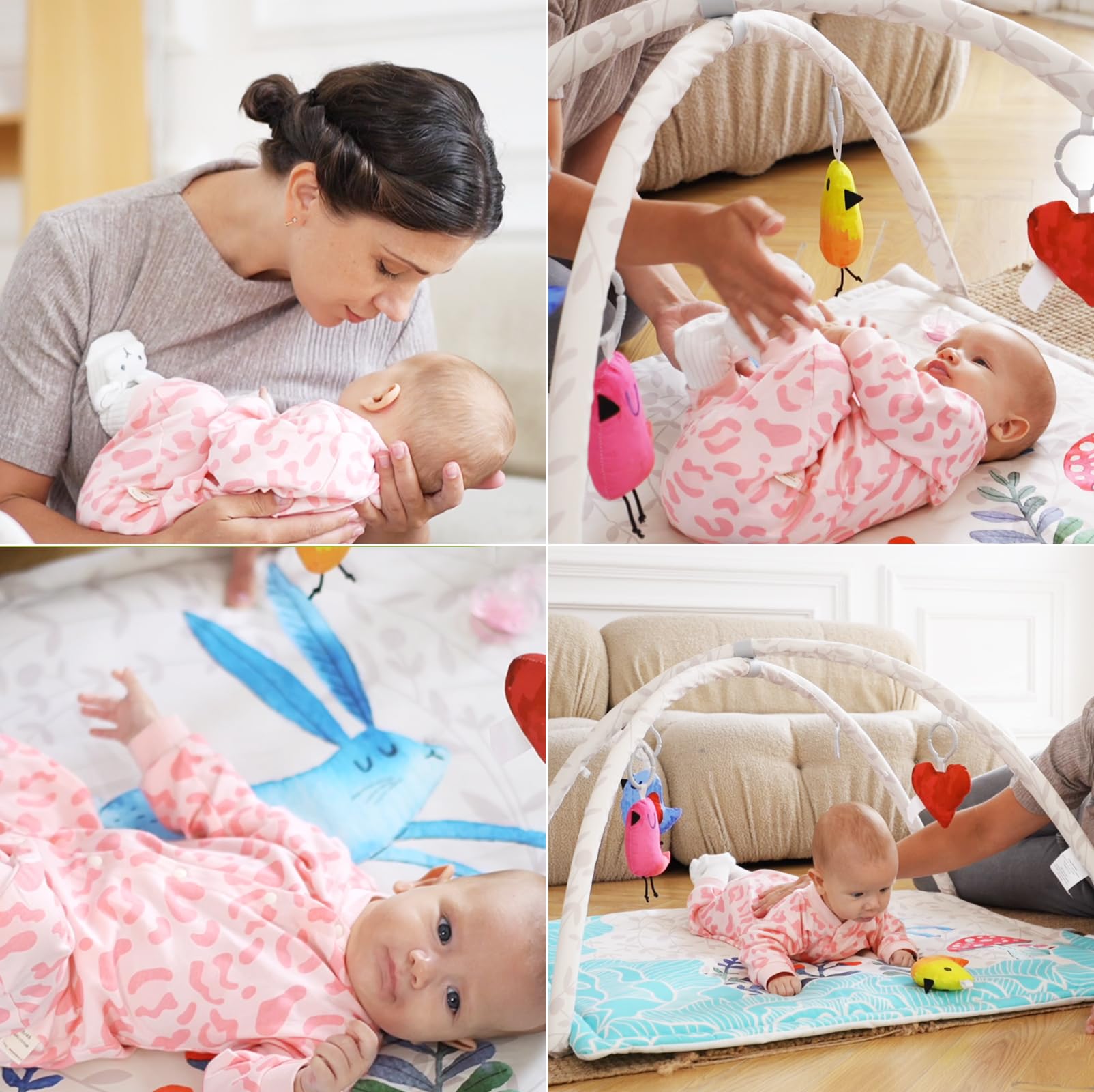- [Versatile 3-in-1 Baby Gym]:The adaptable baby gym kickstarts your little one's developmental voyage. It seamlessly transforms into a playmat, tummy time mat, baby gym, catering to every developmental phase from 0-12 months. Observe as your child delves into learning and unending enjoyment.