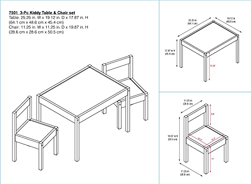 - Set includes 1 table and 2 chairs , Assembled table dimensions - 25.25 L x 19.12 W x 17.87 H inches Assembled chair dimensions - 11.25 L x 11.25 W x 19.87 H inches