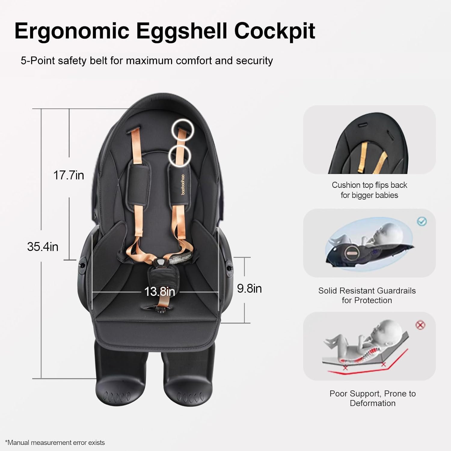 - ERGONOMIC BIOMIMETIC EGG DESIGN:The stroller features a cushioned seat with spine protection and an adjustable footrest, offering optimal support for your baby’s naps and comfort.