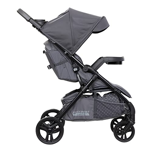 Details: Day trips just became a lot easier with the Passport Cargo Travel System by Baby Trend! Innovative storage solutions allow for quick and easy access to your most essential belongings. A large integrated storage pouch on the back seat of the stroller and front and rear access basket provides the ultimate in convenience for the busy family. The parent tray includes a helpful phone positioner that holds in portrait or landscape mode, along with two large cup holders. The Passport Cargo is equipped with Comfort Cabin, which includes plush seat padding and a large canopy with UPF 50+ protection. Parents will also love the handle with a removable leatherette cover and the quick, easy and compact center fold. This unique travel system includes the EZ-Lift 35 PLUS infant car seat that weighs 7.5 lb and has an integrated Side Grip for ergonomic carrying. The EZ-Lift PLUS handlebar can be pushed forward to provide anti-rebound protection in the event of a collision. The car seat includes a base with a recline flip foot for a comfortable recline angle for baby as well as a bubble level indicator.