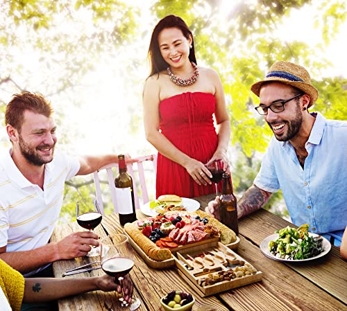 - 🎋 PREMIUM BAMBOO CRAFTSMANSHIP: Our charcuterie board set is carved from robust, eco-friendly Moso bamboo. The large wooden cutting boards for the kitchen & and cheese platter isn't just a sustainable choice - it's a statement piece that adds a touch of elegance and sophistication to your gatherings. Enjoy the charm of natural wood grain on every occasion.