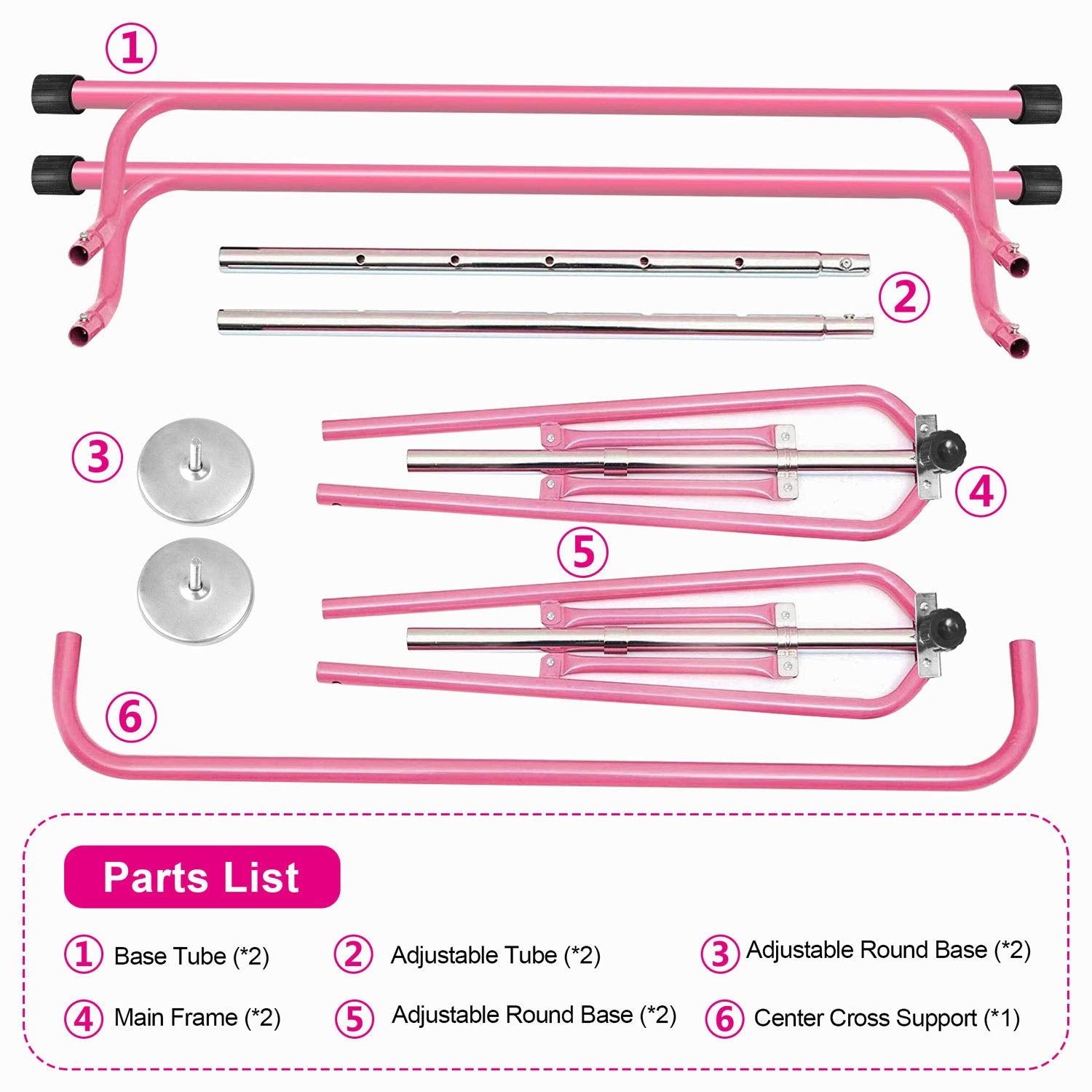 - 【5 LEVELS TO ADJUST】: The gymnastics bar can be adjusted from 34 to 50 inches:34''/38''/42''/46''/50''. The gymnastic bars can be easily adjusted up or down in height. It will grow up with your kids.