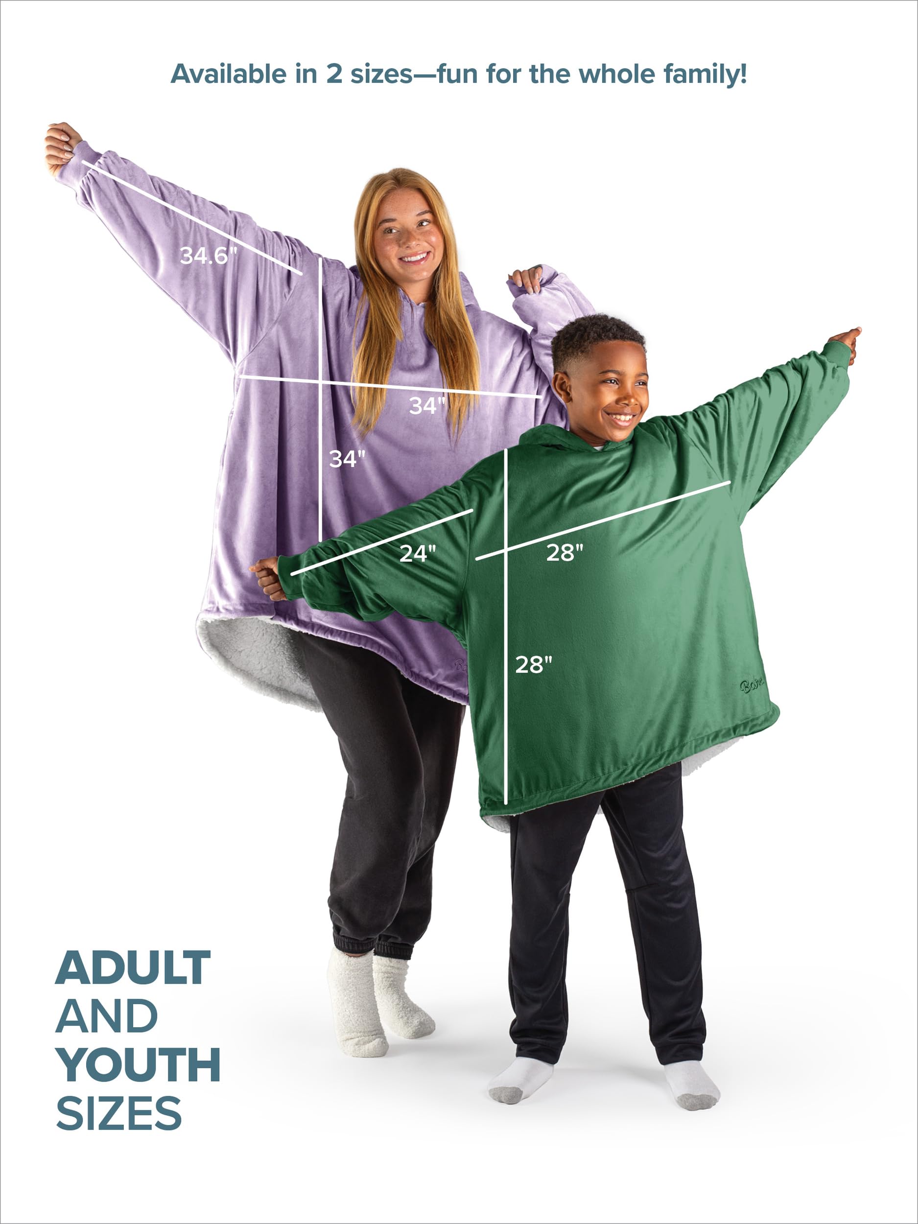 - OVERSIZED EVERYTHING: With a huge plush hood, deep pockets, oversized sleeves and a high-low hem, our Homey features velvety soft microplush fleece outside and fluffy sherpa inside for warmth and coziness. Our wearable blanket is great for relaxing at home while binging your favorite shows, walking the dog, wearing to the next outdoor sporting event, a sleepover, or even to school. Homey is perfect for the whole family! Matching family photos have never been this fun!