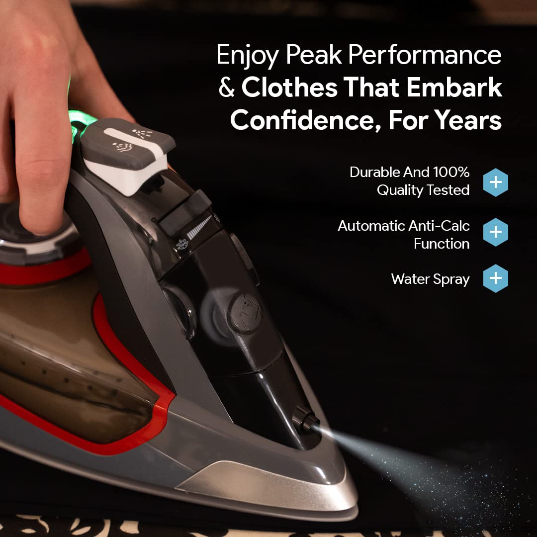 - BEST IN-CLASS STEAM - Customized ironing with steam bursts and temperature control: You can easily control the temperature and the clothes iron steam with the temperature control dial and steam knob for dry and steam ironing. Also, level up your ironing with the powerful steam burst feature.