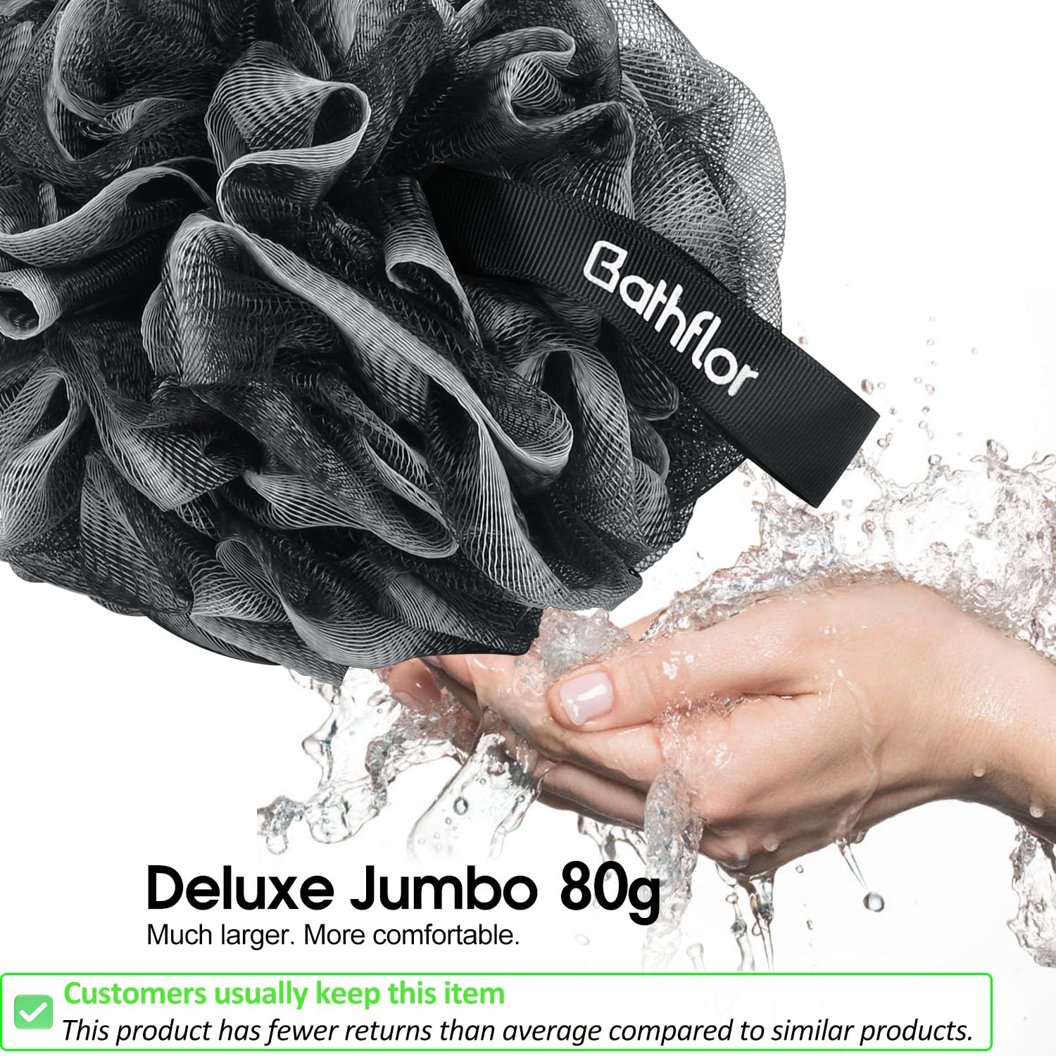 - Comfortable & Save Shower Gel: XL size Deluxe Jumbo 80g, these bath sponges create richer lather and body exfoliating for your comfortable shower, save over 20% of body wash shower gel. With micron-grade activated charcoal composition, it can effectively clean up the oil on your skin.