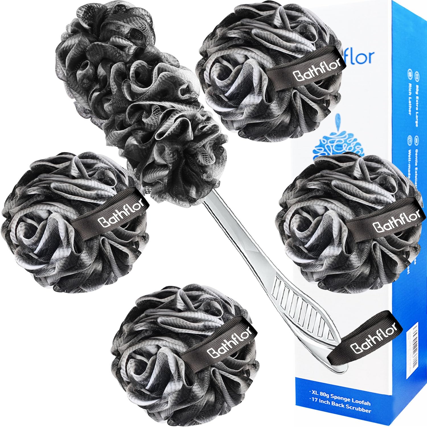 - What You Get: 17 inch loofah on a stick-back scrubber *1, and 80g ultra large shower loofah sponge-shower scrubber for body *4, and hook for shower loofa and bath brush *1, and large Gift Package *1, and first-class customer service. With unrivaled advantages and benefits, it’s an ideal gift for Valentine's Day, Mother's Day, Father's Day, Thanksgiving and Christmas Day, etc.