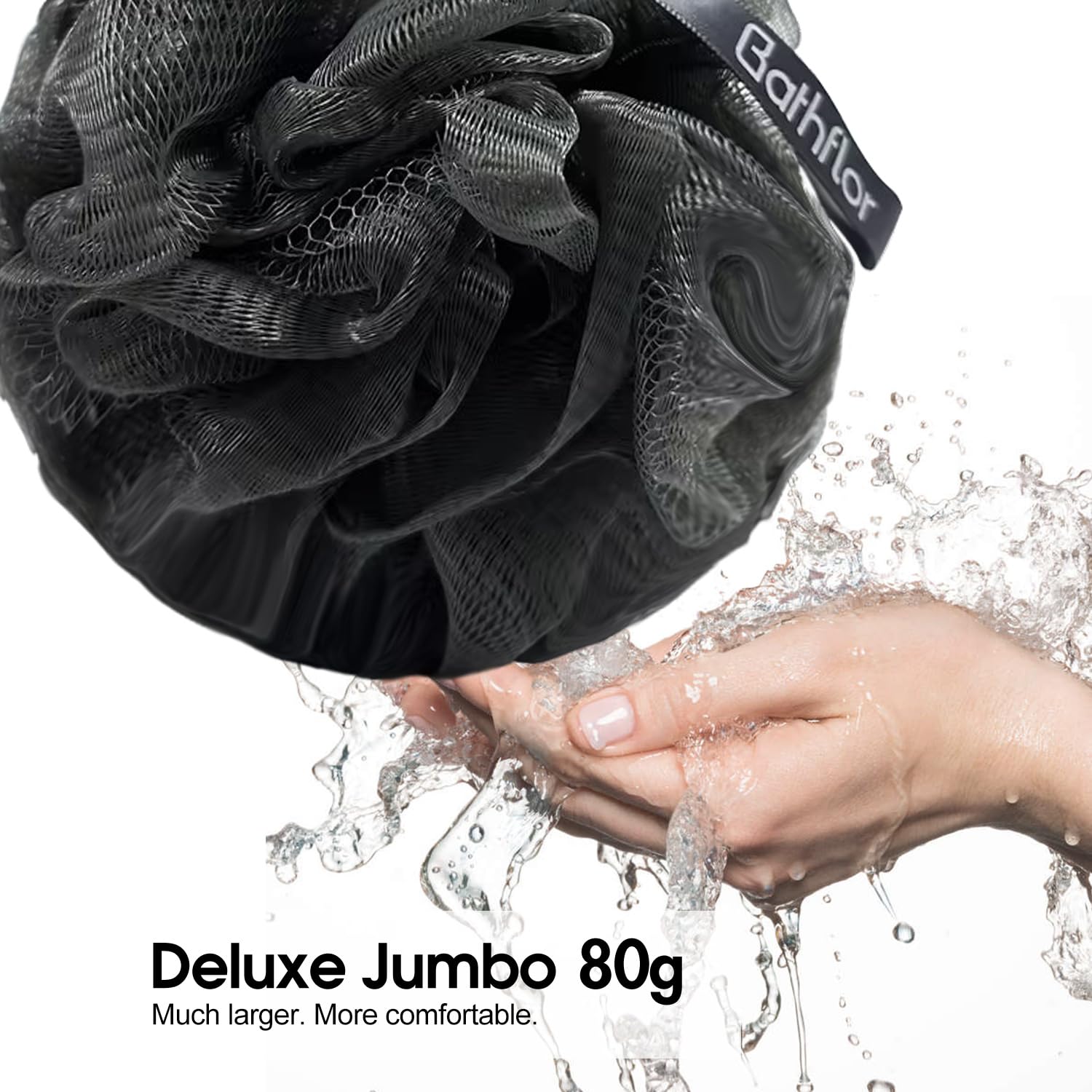 - Comfortable & Save Shower Gel: XL size Deluxe Jumbo 80g, these bath sponges create richer lather and body exfoliating for your comfortable shower, save over 20% of body wash shower gel. With micron-grade activated charcoal composition, it can effectively clean up the oil on your skin.
