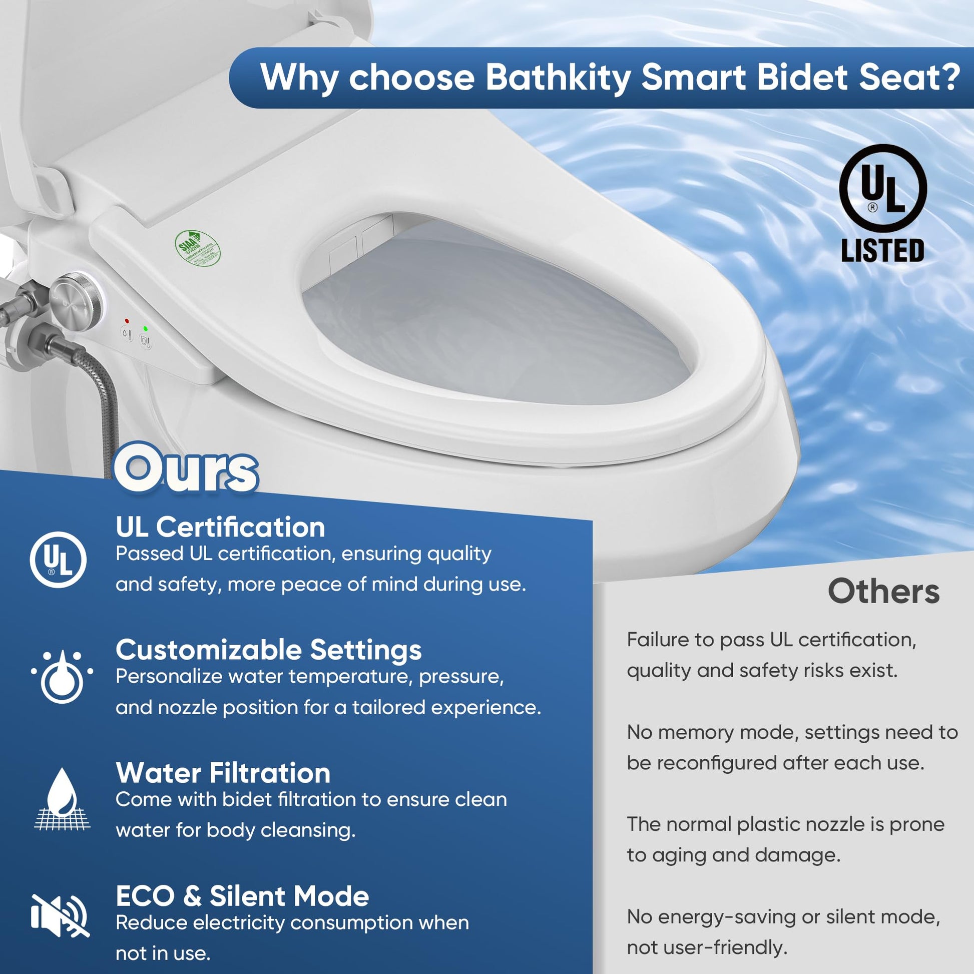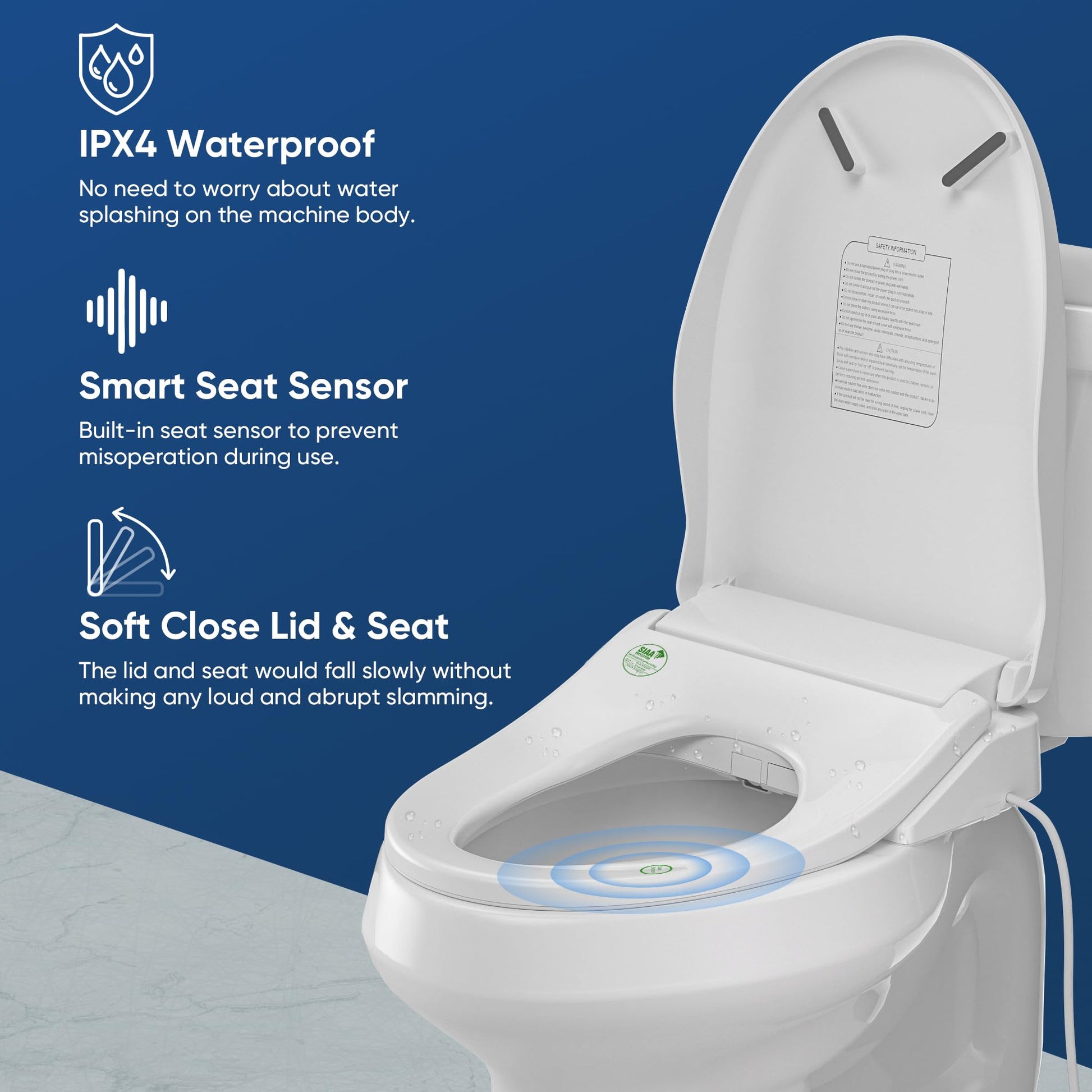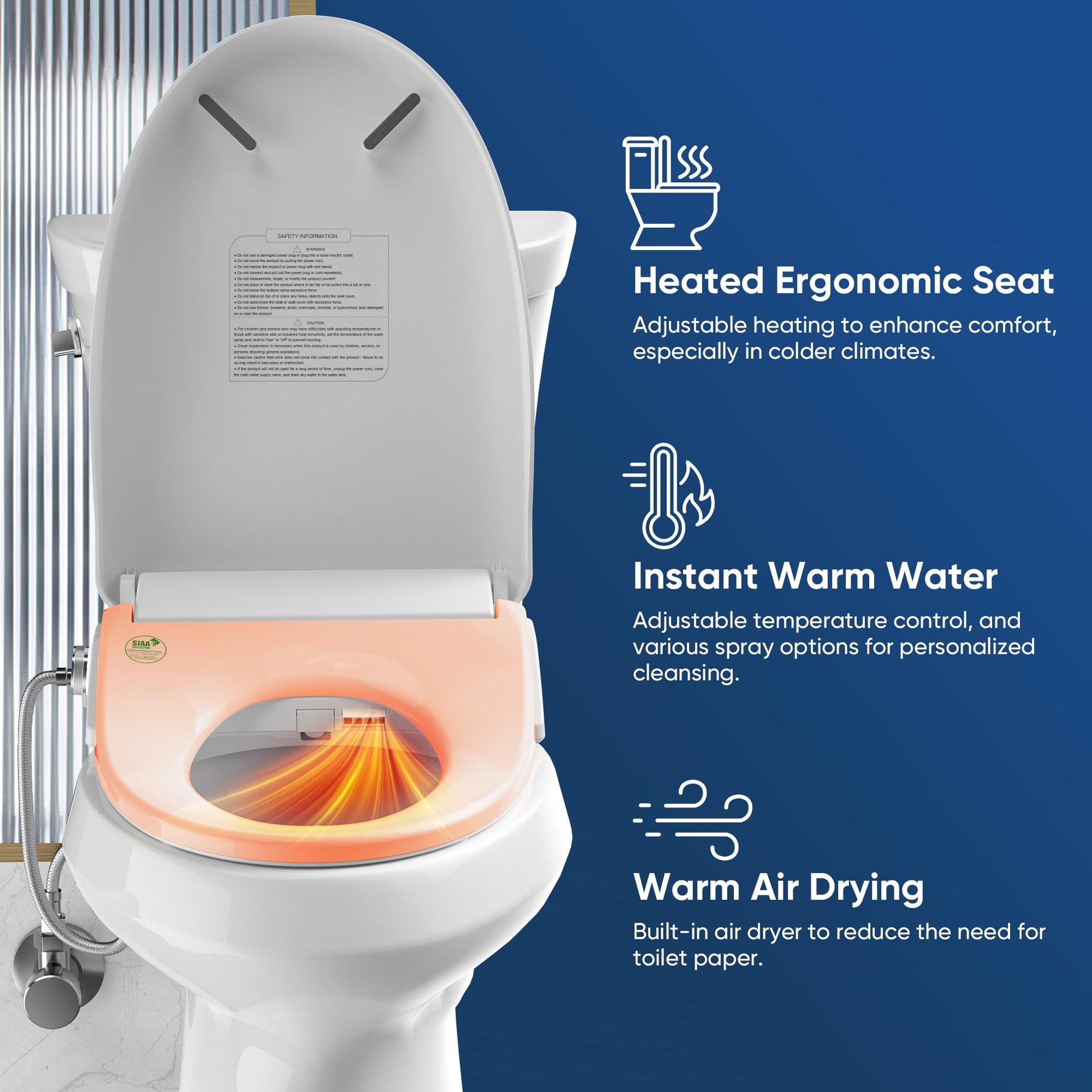 - Healthy and Hygienic Cleaning: The Bidet Toilet Seat comes with self-cleaning stainless steel nozzles, which guarantee hygiene with minimal effort. Made from SIAA-certified materials, the bidet prioritizes safety and cleanliness. Every aspect of your bathroom experience is designed to promote health and hygiene.
