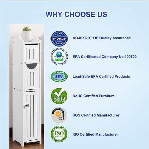 Bathroom Furniture Sets: Small Bathroom Storage Cabinet Great for Toilet Paper Holder,Toilet Paper Cabinet for Small Spaces,White Bathroom Organizer by AOJEZOR
