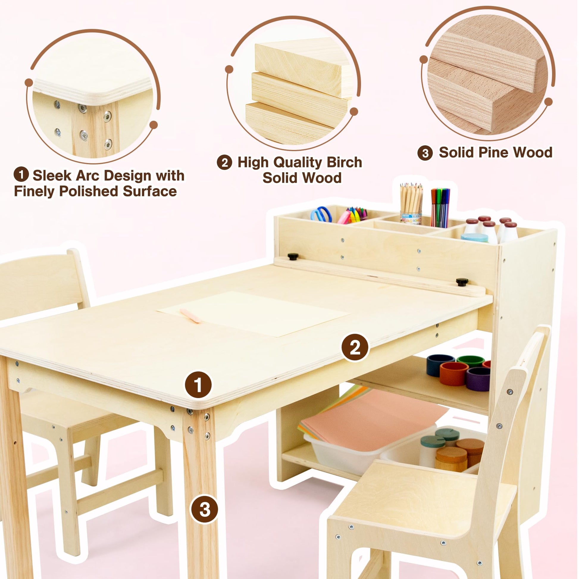 - Perfect for Toddlers & Storage-Friendly: With spacious storage, this set is ideal for keeping craft supplies, paints, and more organized. The large tabletop comfortably fits 2-3 children, making it perfect for arts, games, and snack time.